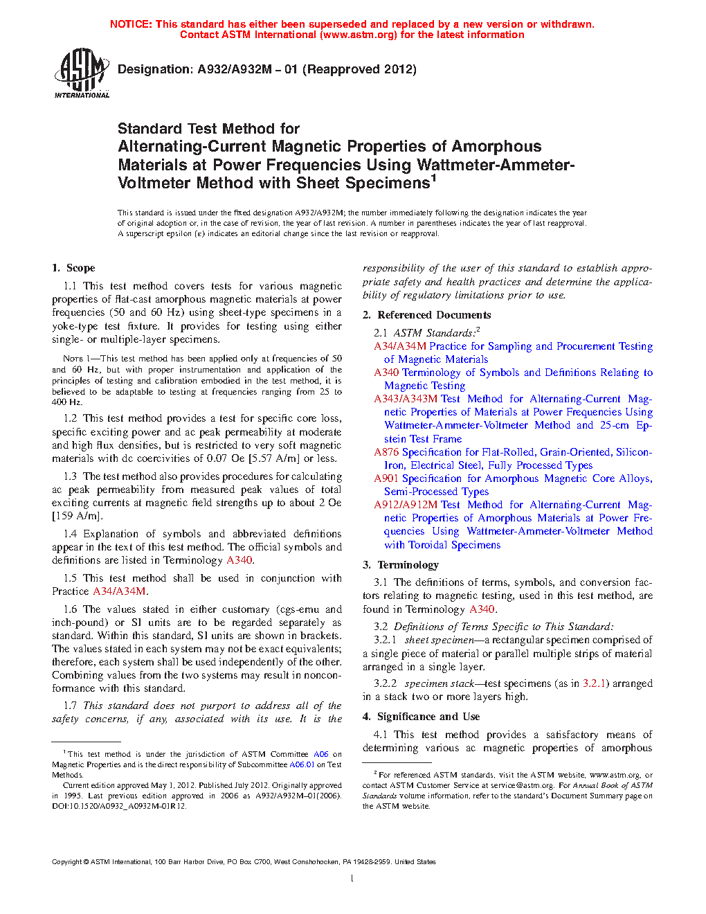 4.2 The procedures described herein are suitable for use by manufacturers and users of amorphous magnetic materials for materials specification acceptance and manufacturing control.