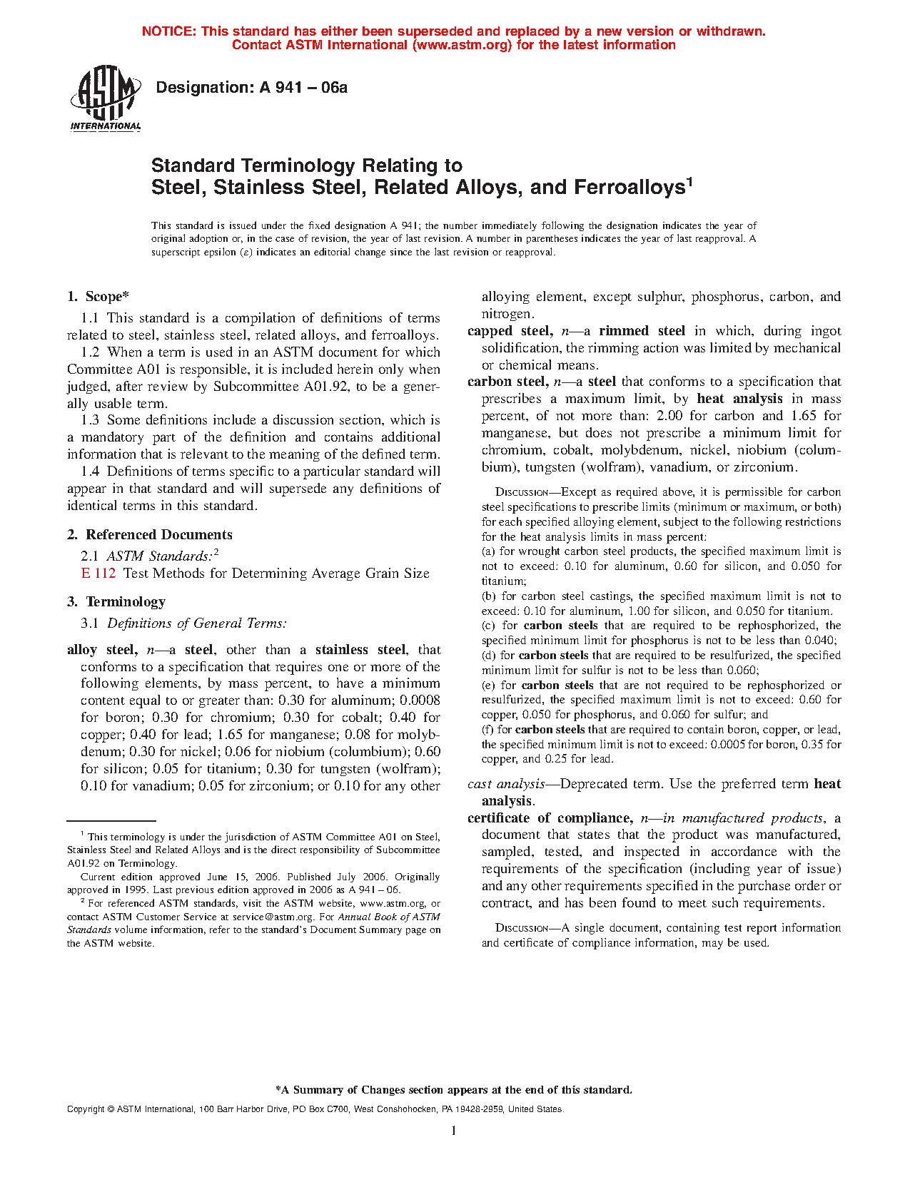 Standard Terminology Relating to Steel, Stainless Steel, Related Alloys, and Ferroalloys