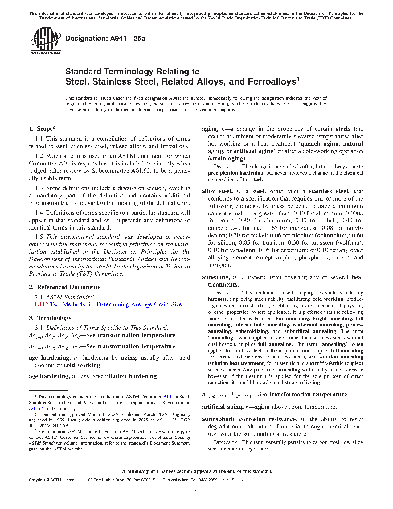 Standard Terminology Relating to Steel, Stainless Steel, Related Alloys, and Ferroalloys