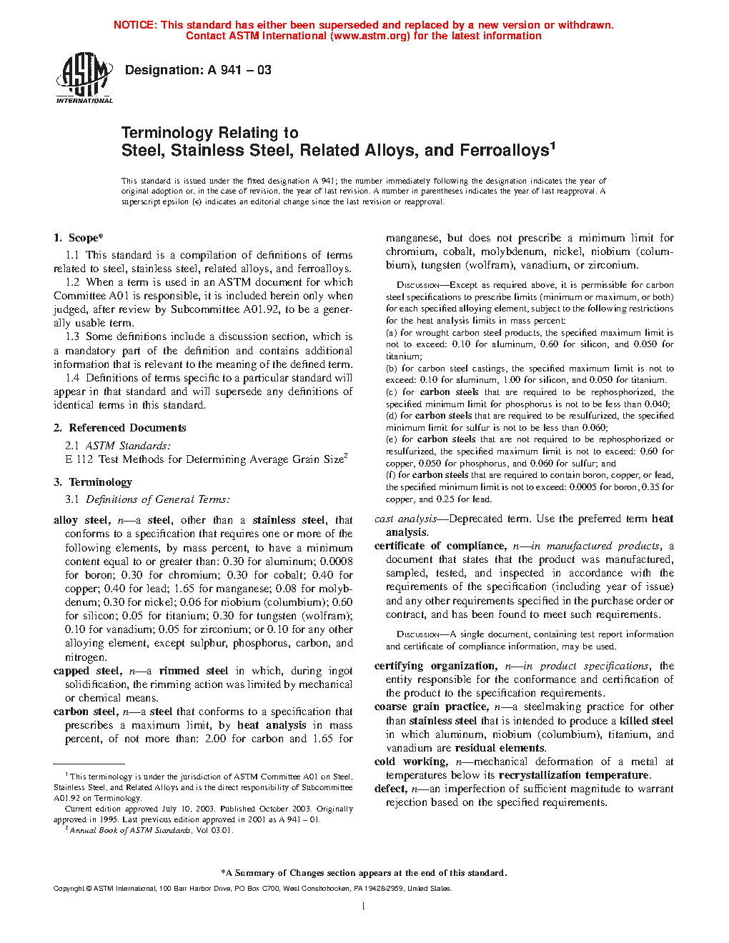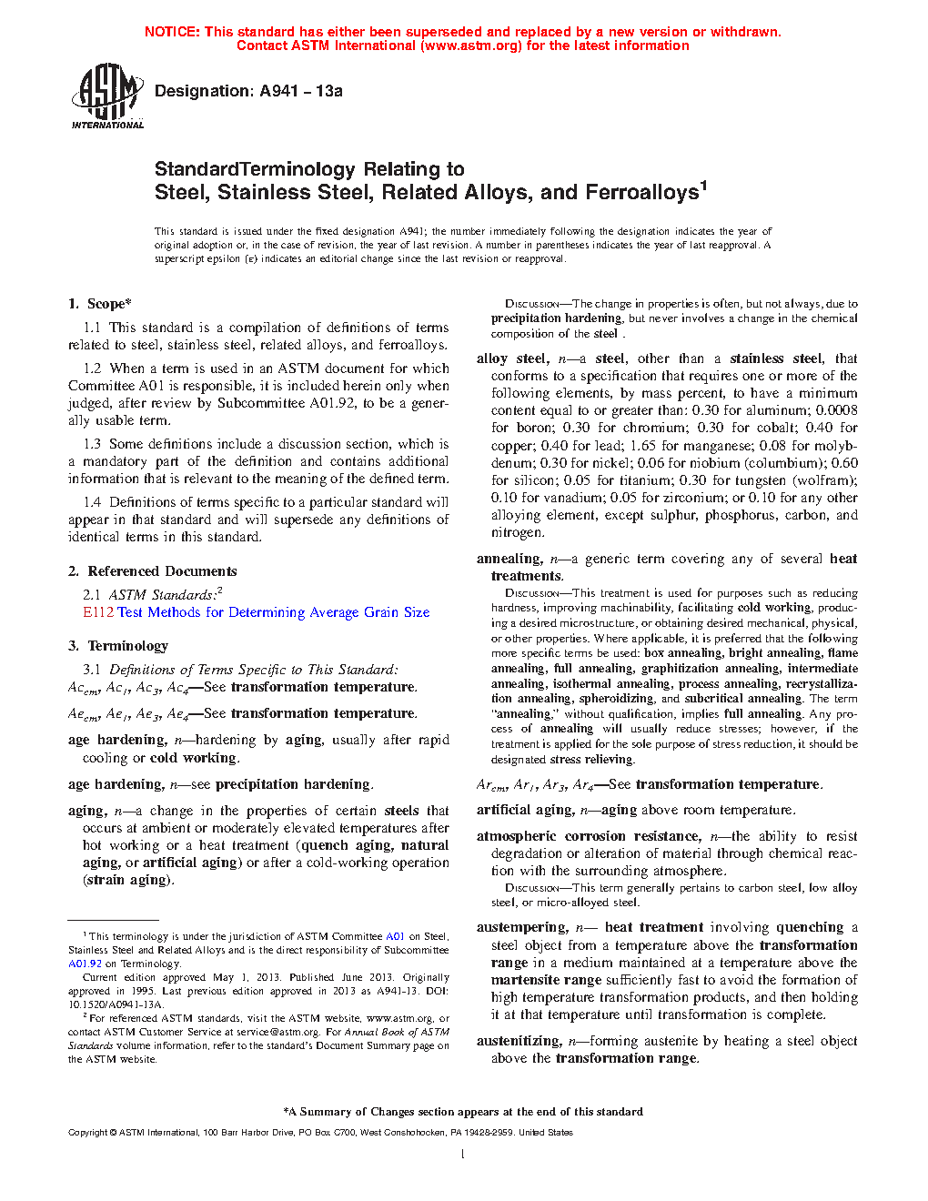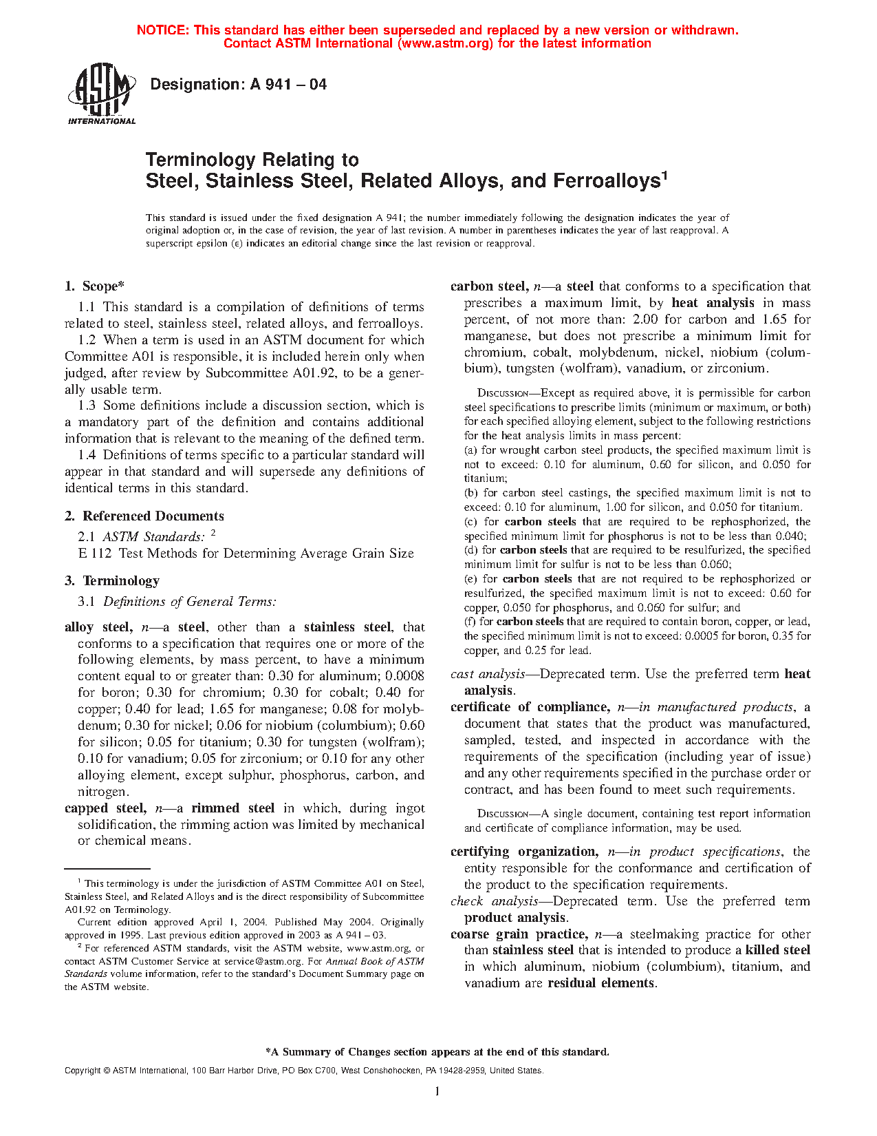 Standard Terminology Relating to Steel, Stainless Steel, Related Alloys, and Ferroalloys