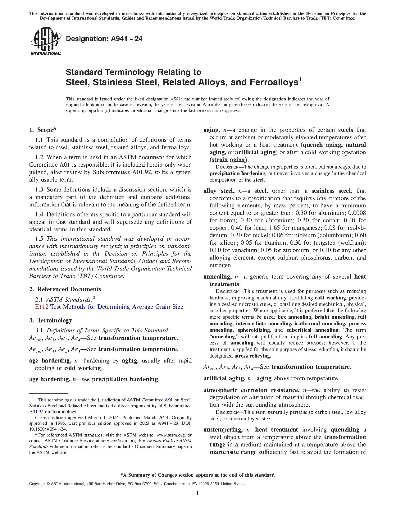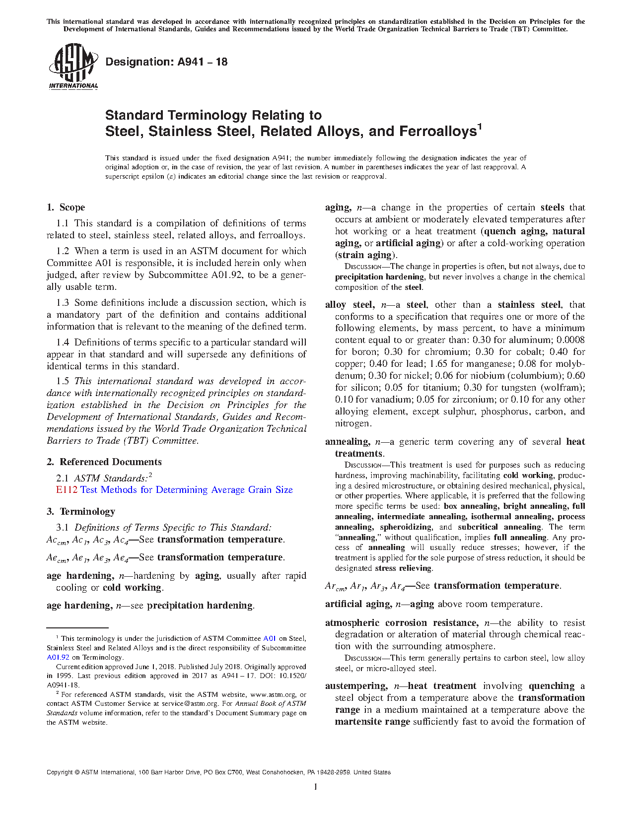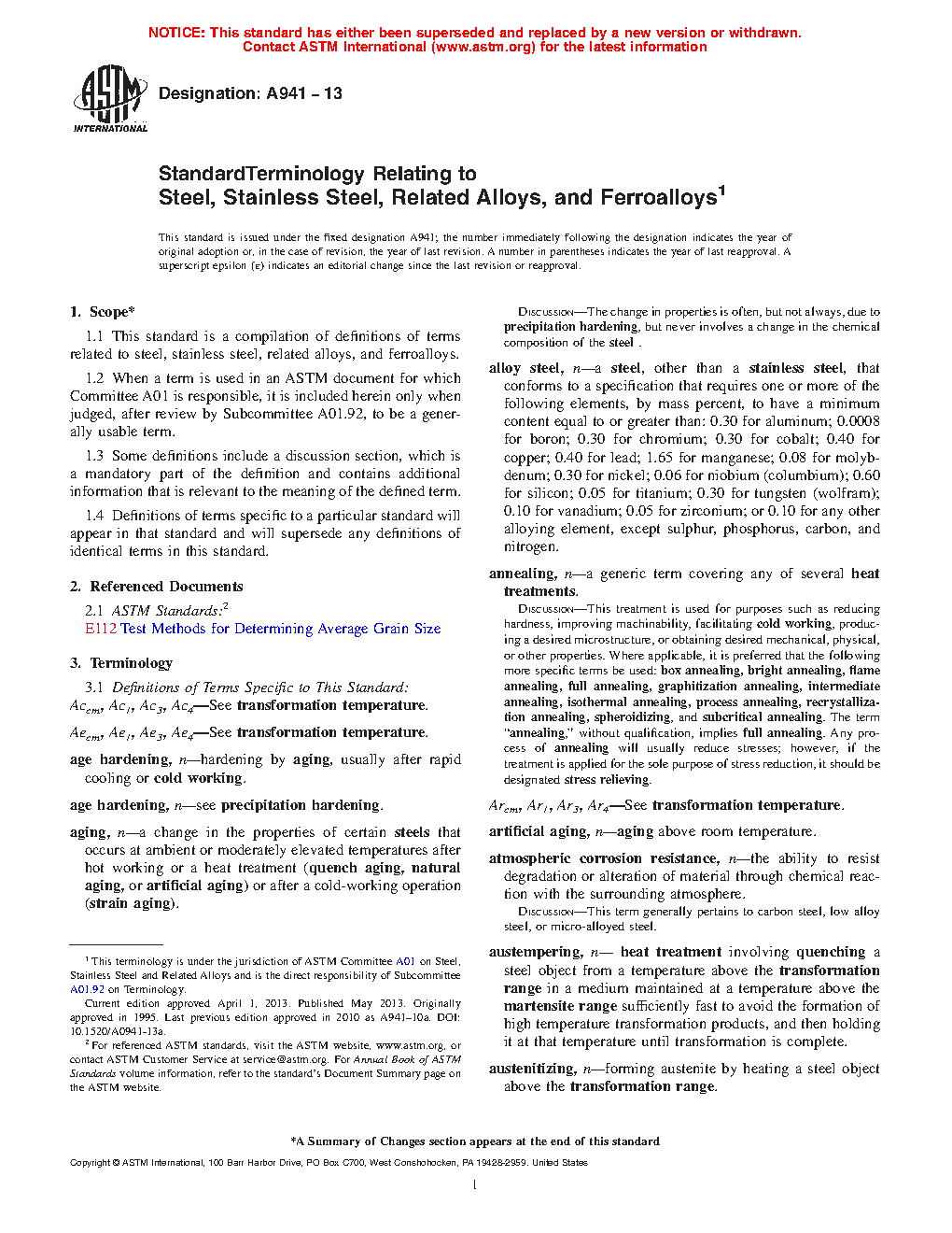 Standard Terminology Relating to Steel, Stainless Steel, Related Alloys, and Ferroalloys