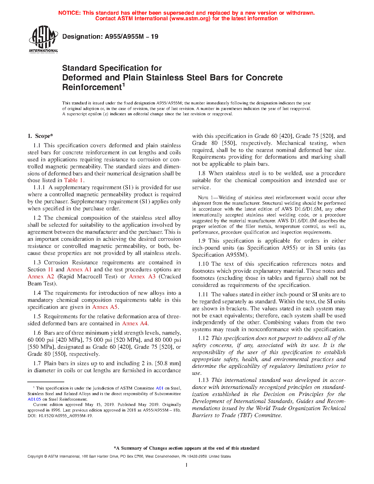 1.6 This specification is applicable for orders in either inch-pound units (as Specification A 955) or in SI units (as Specification A 955M).