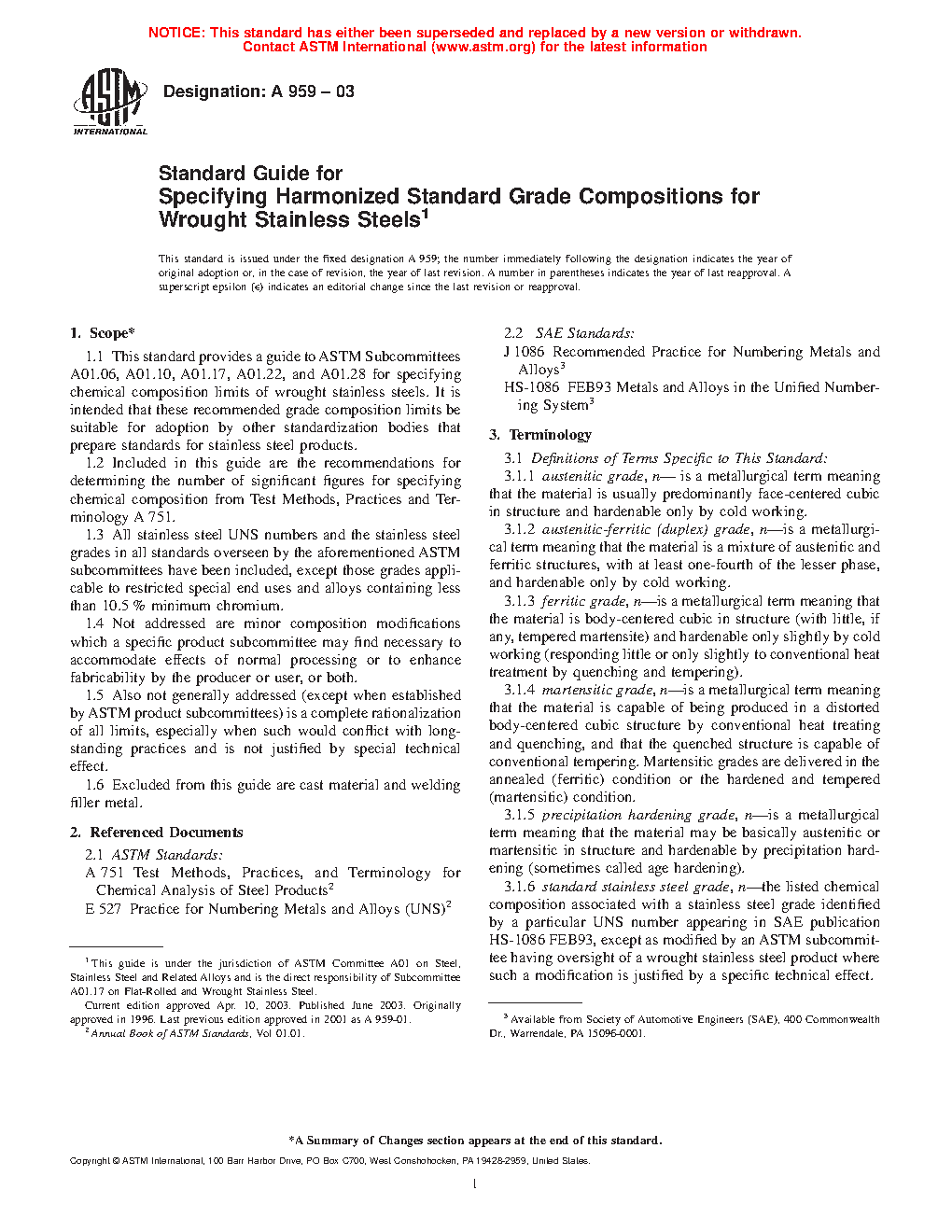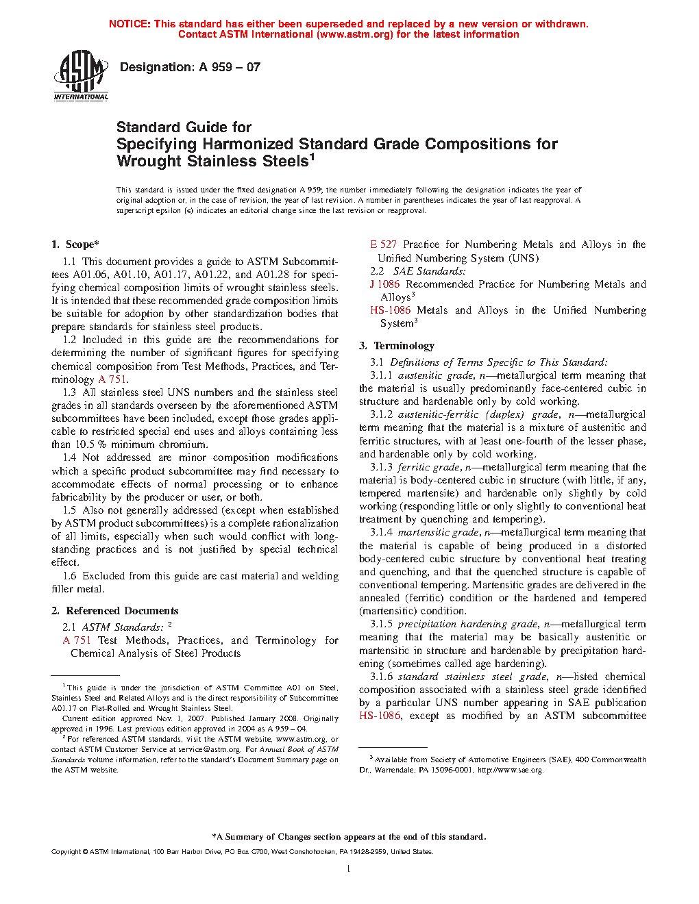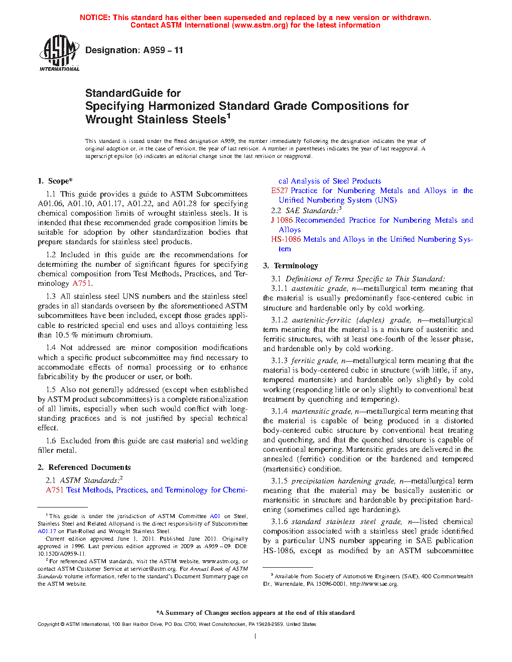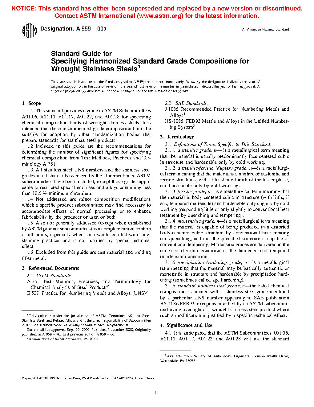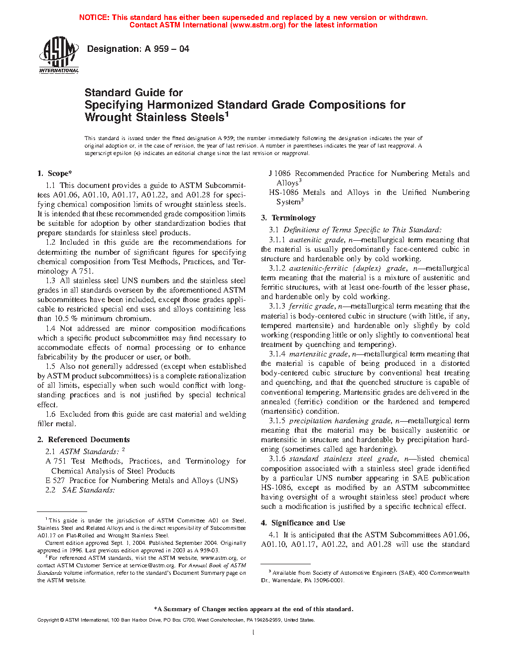 4.3 Not included in this standard stainless steel grade harmonization effort is an attempt to unify stainless steel compositions in ASTM product standards by any means other than recognizing current industry practices.