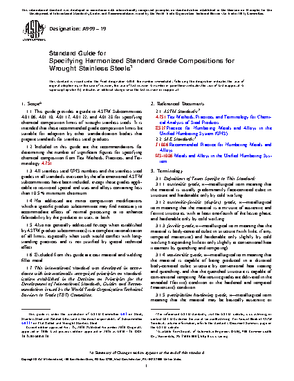 1.1 This guide provides a guide to ASTM Subcommittees A01.06, A01.10, A01.17, A01.22, and A01.28 for specifying chemical composition limits of wrought stainless steels. It is intended that these recommended grade composition limits be suitable for adoption by other standardization bodies that prepare standards for stainless steel products.