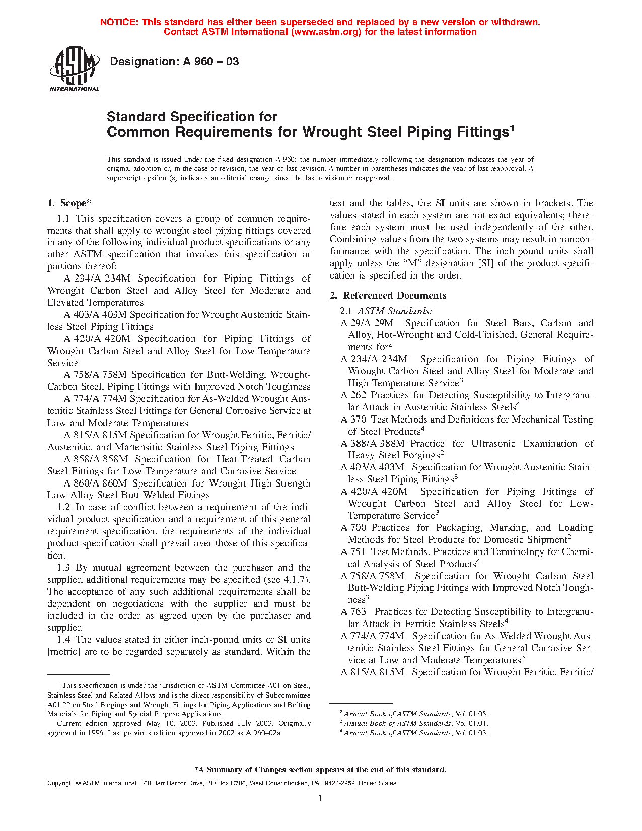 1.1 This specification covers a group of common requirements that shall apply to wrought steel piping fittings covered in any of the following individual product specifications or any other ASTM specification that invokes this specification or portions thereof: