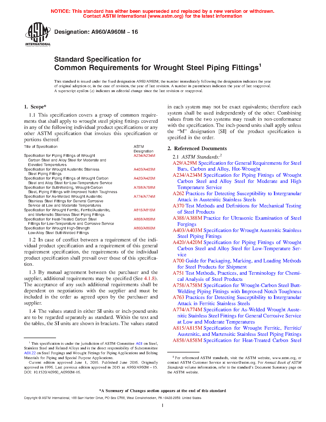 | Specification for Wrought Austenitic Stainless Steel Piping Fittings | A403/A403M |