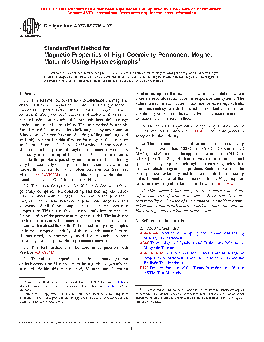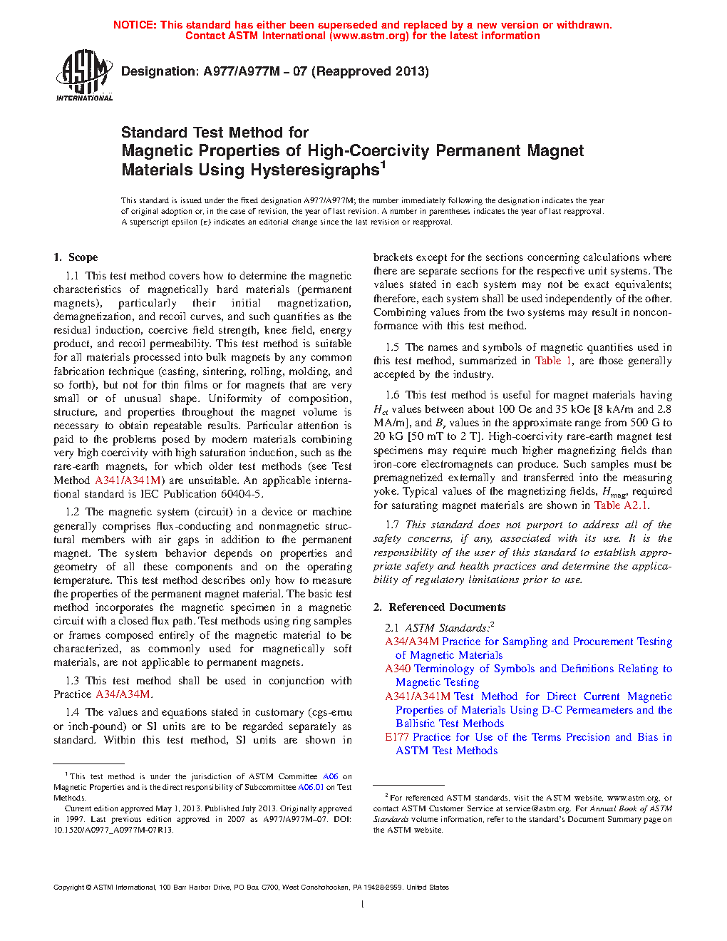This test method is suitable for magnet specification, acceptance, service evaluation, quality control in magnet production, research and development, and design.