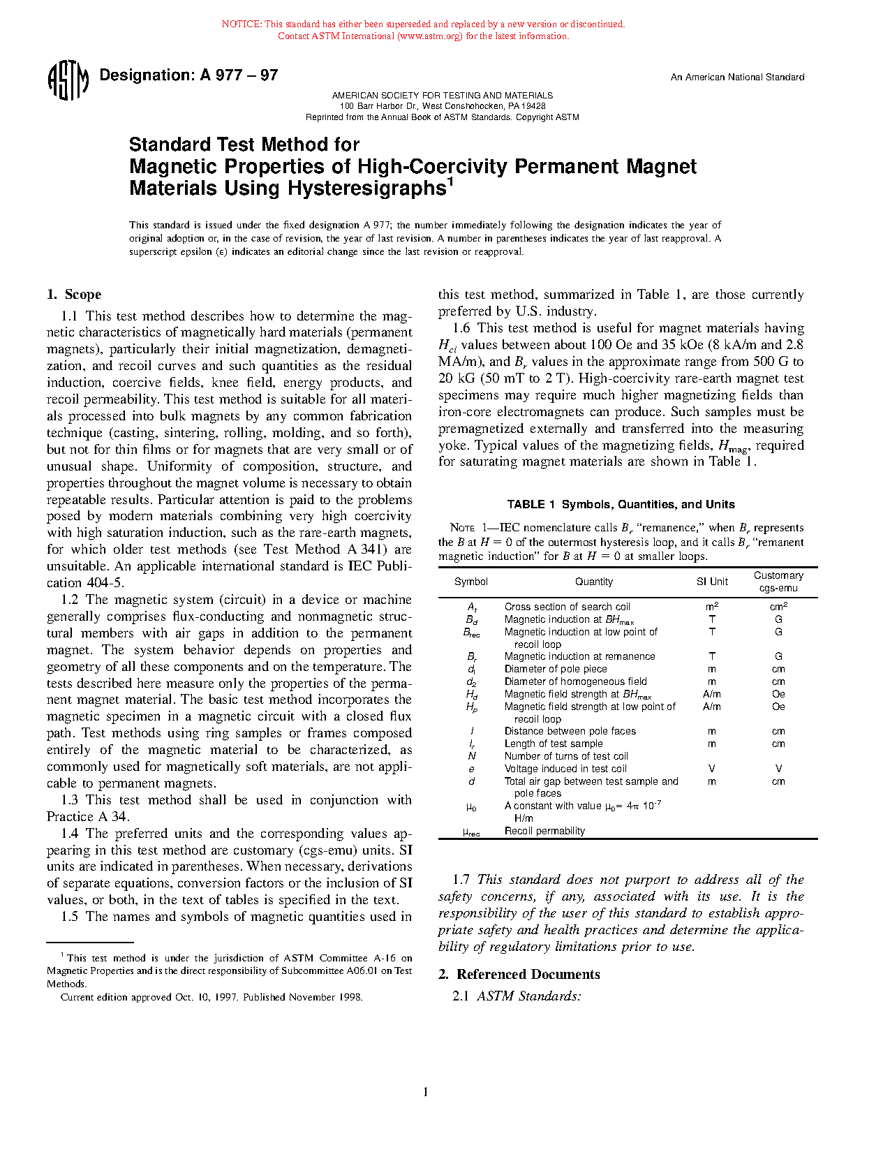 1.5 The names and symbols of magnetic quantities used in this test method, summarized in Table 1, are those currently preferred by U.S. industry.
