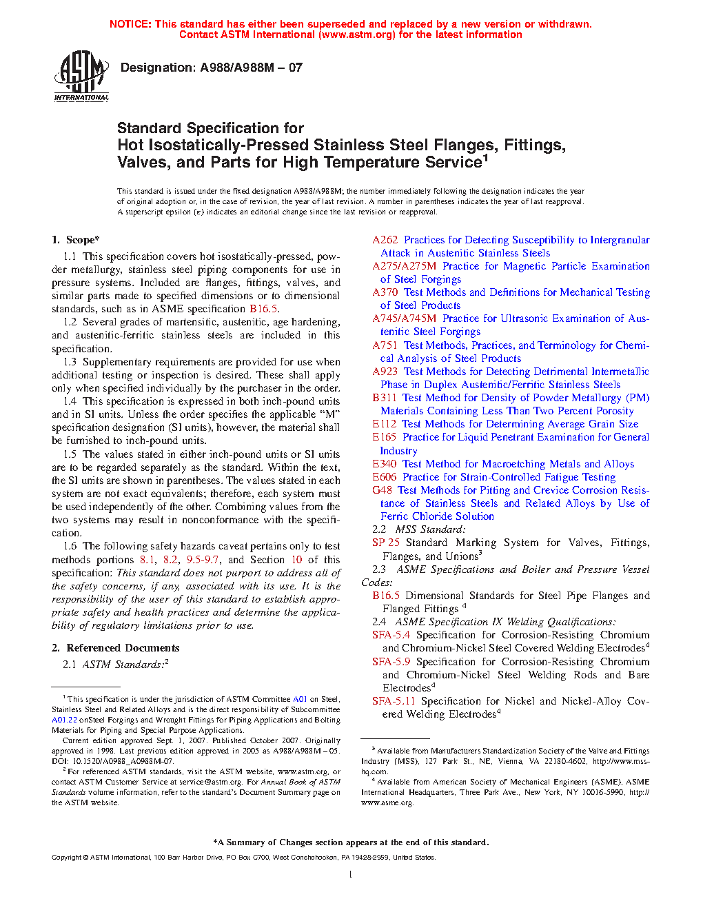 1.1 This specification covers hot isostatically-pressed, powder metallurgy, stainless steel piping components for use in pressure systems. Included are flanges, fittings, valves, and similar parts made to specified dimensions or to dimensional standards, such as in ASME specification B16.5.