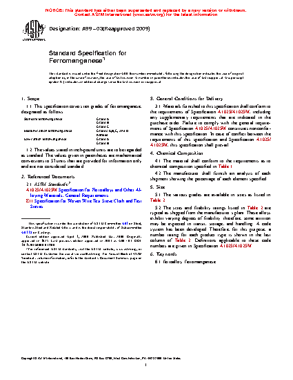 1.1 This specification covers ten grades of ferromanganese, designated as follows: