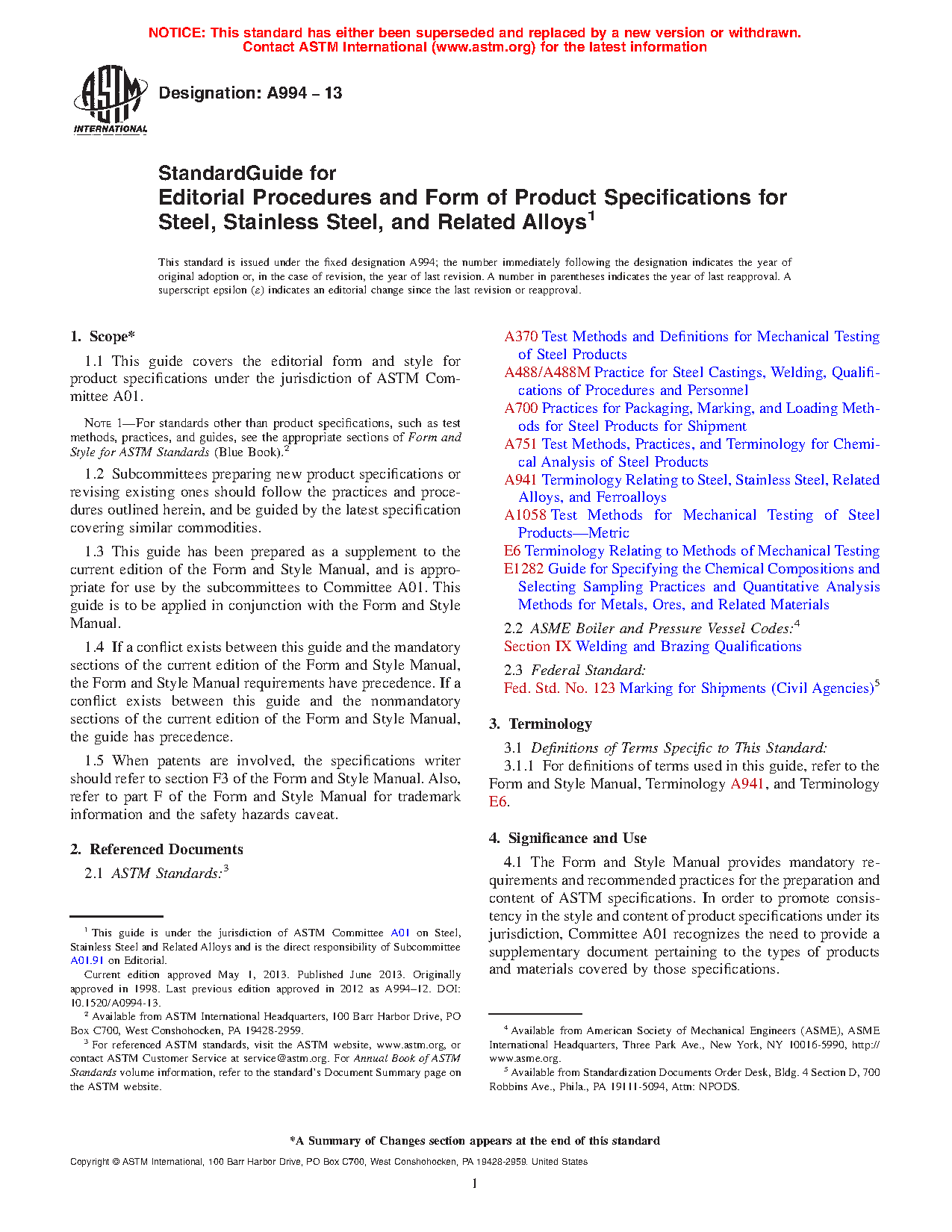 1.3 This guide has been prepared as a supplement to the current edition of the Form and Style Manual, and is appropriate for use by the subcommittees to Committee A01. This guide is to be applied in conjunction with the Form and Style Manual.