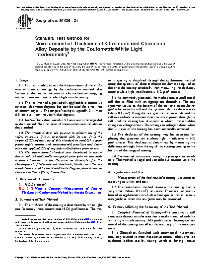 1.2 This test method is particularly applicable to decorative trivalent chromium deposits but can be used for other thin chromium deposits. The range of testing is typically 0.1 µm to 0.5 µm, but it can include thicker deposits.