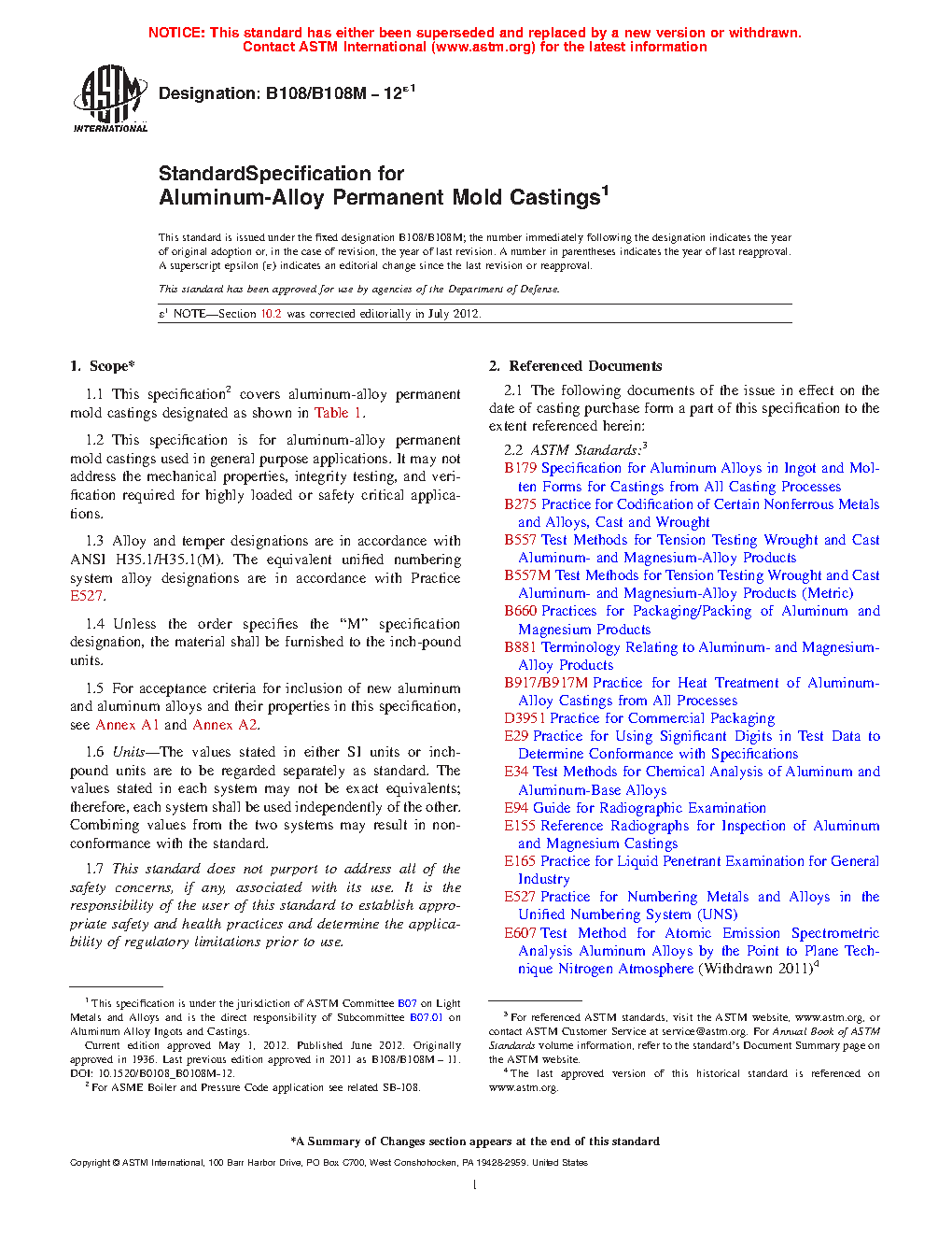 ASTM B108/B108M-12e1