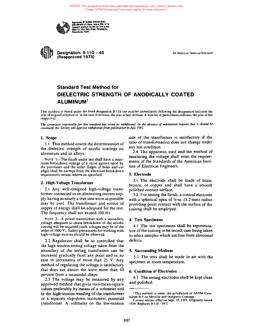 Method of Dielectric Strength of Anodically Coated Aluminum (Withdrawn 1981)