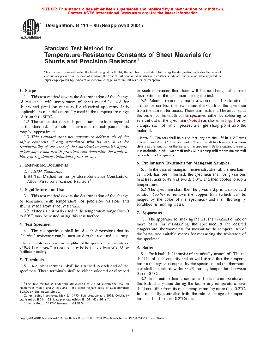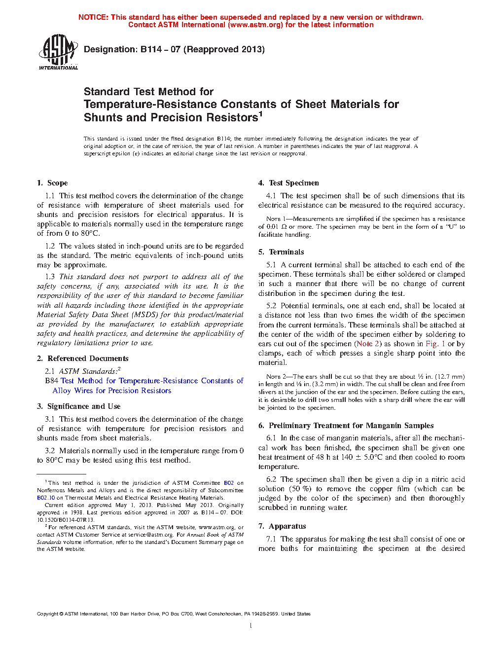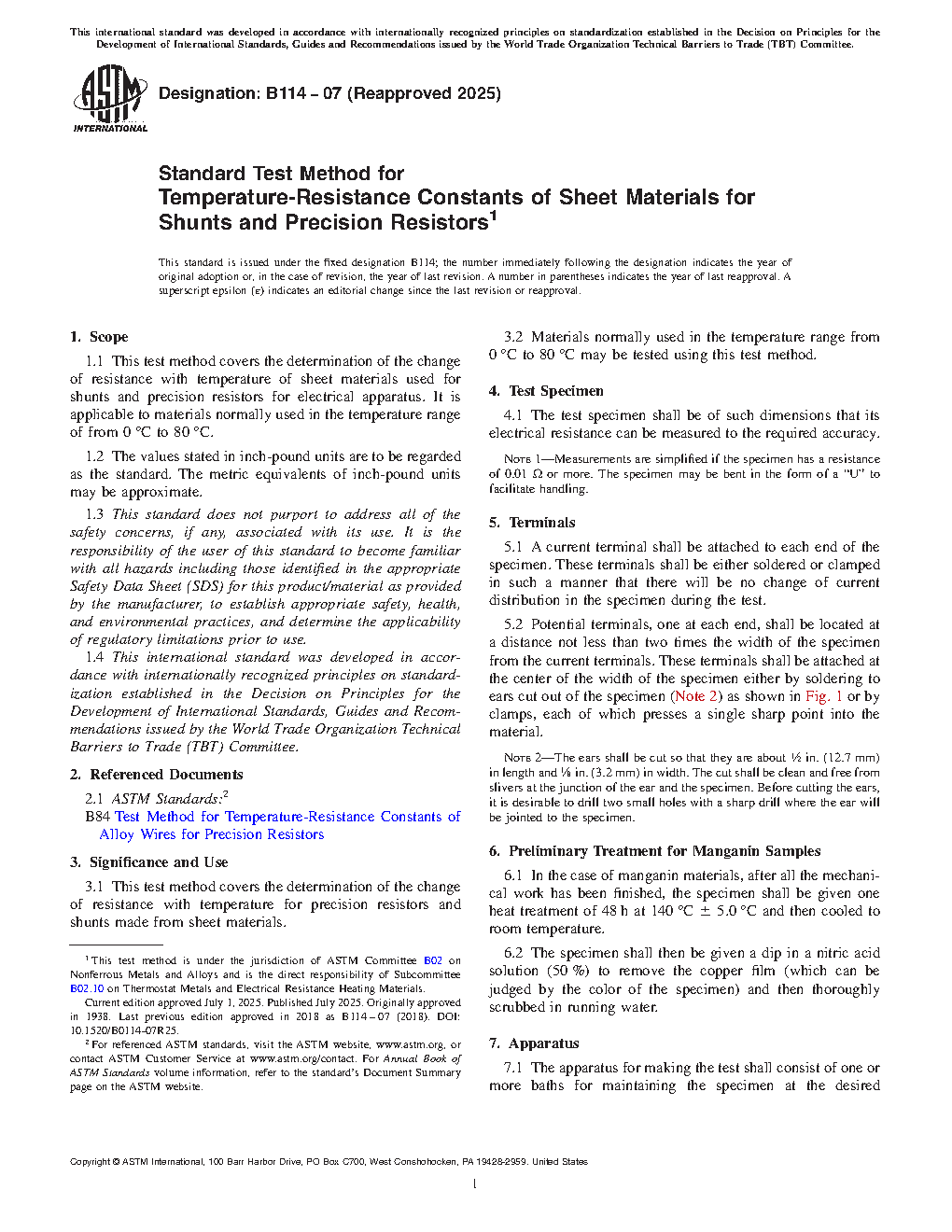 3.1 This test method covers the determination of the change of resistance with temperature for precision resistors and shunts made from sheet materials.