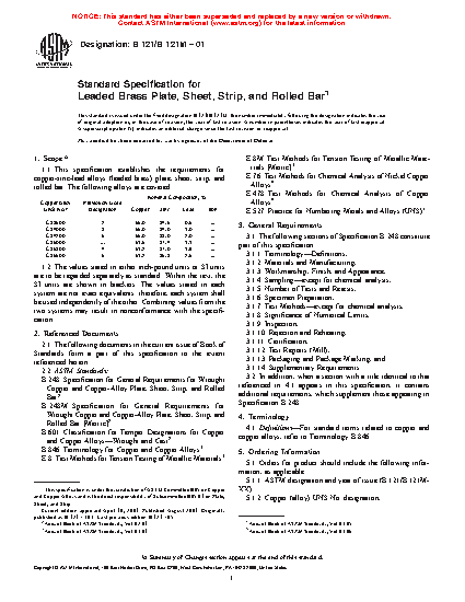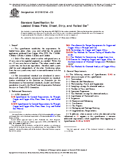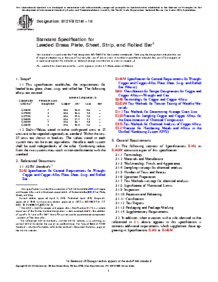 1.1 This specification establishes the requirements for leaded brass plate, sheet, strip, and rolled bar. The following alloys are covered: