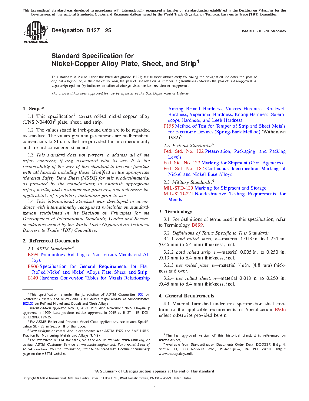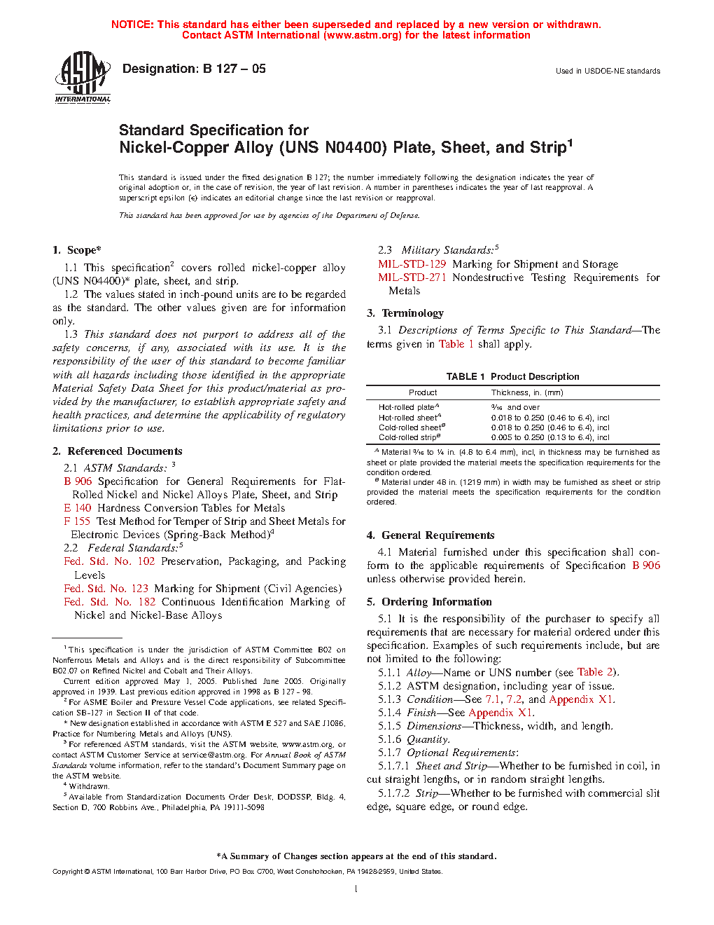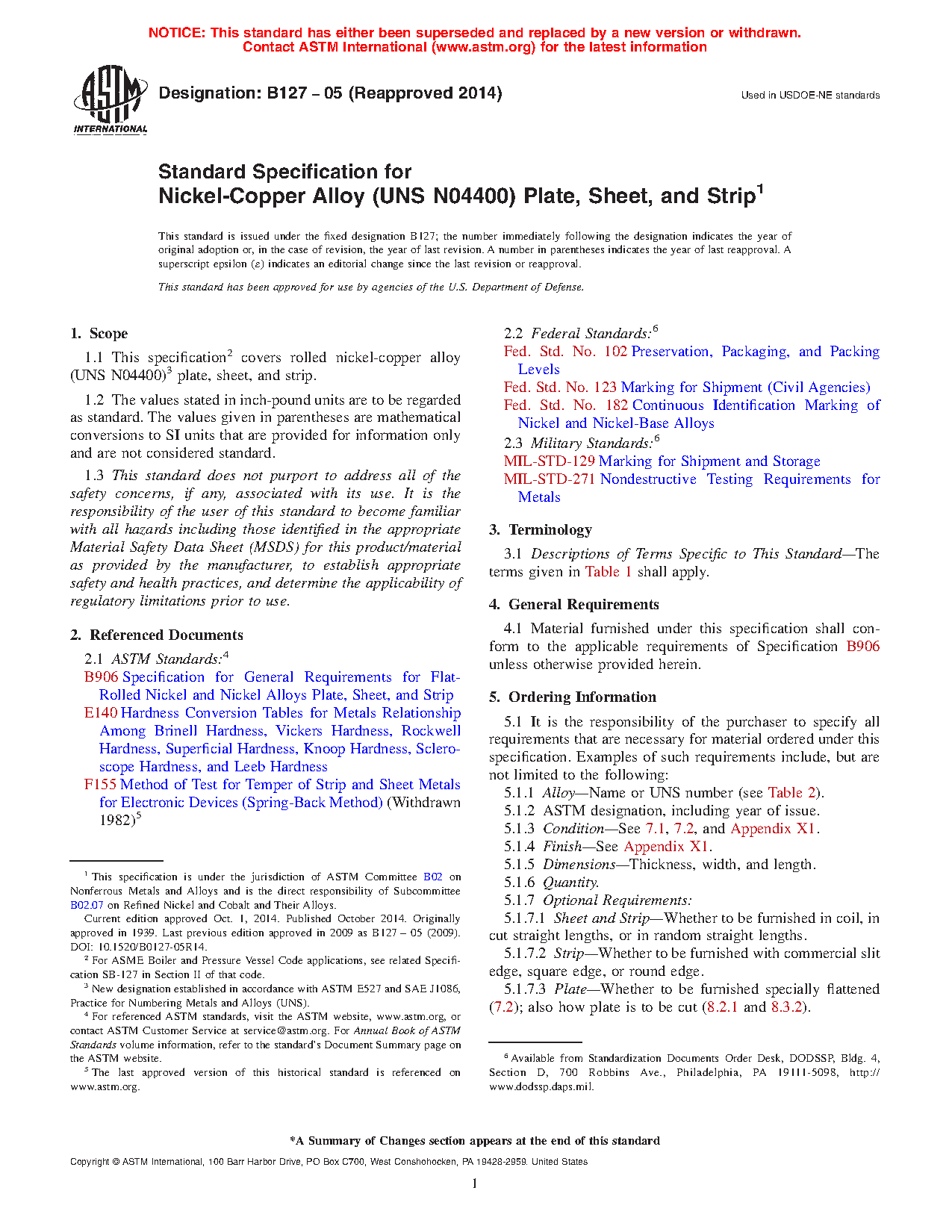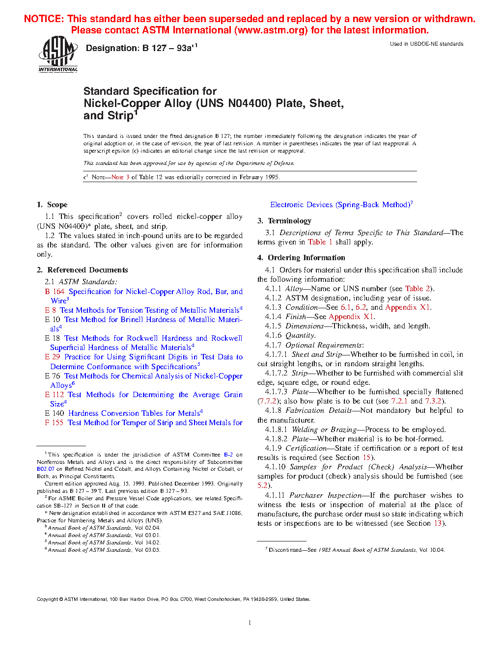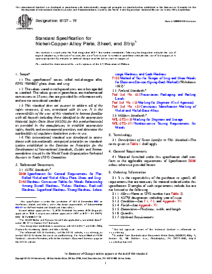 1.1 This specification2 covers rolled nickel-copper alloy (UNS N04400)3 plate, sheet, and strip.