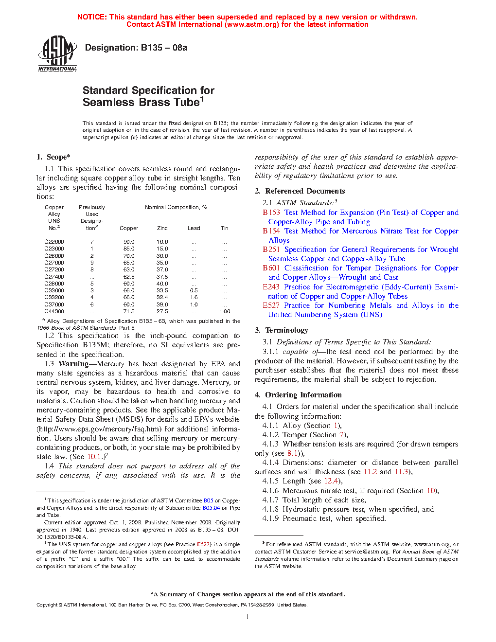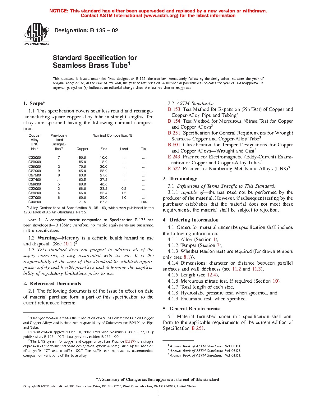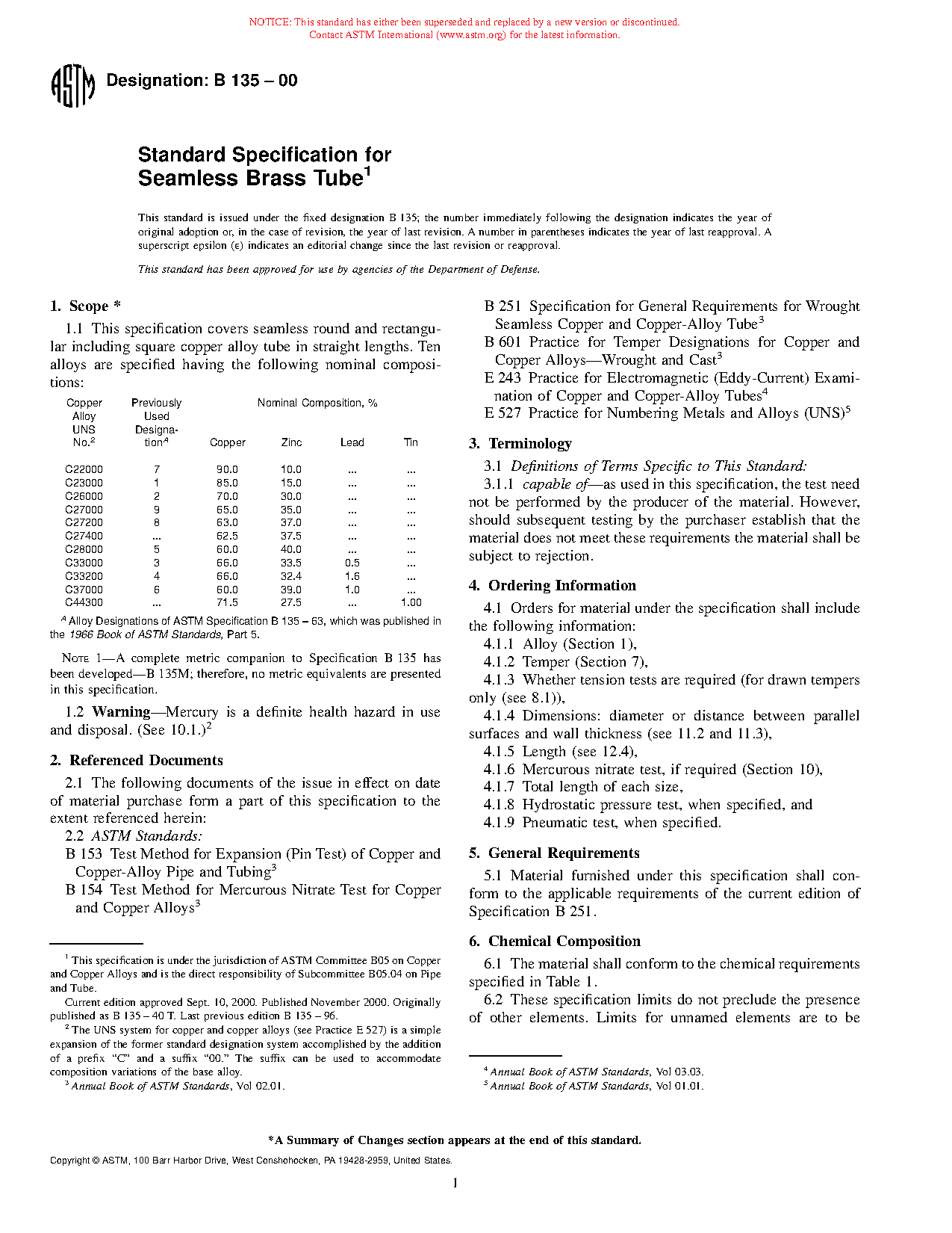 1.1 This specification covers seamless round and rectangular including square copper alloy tube in straight lengths. Ten alloys are specified having the following nominal compositions: