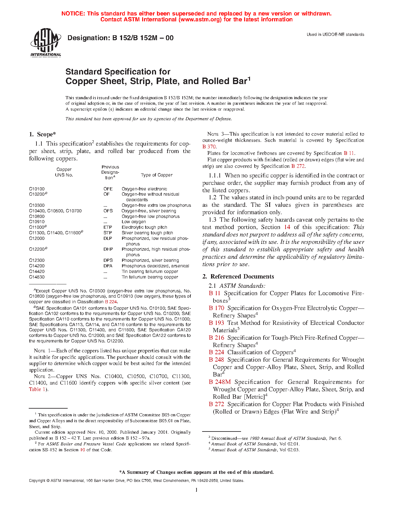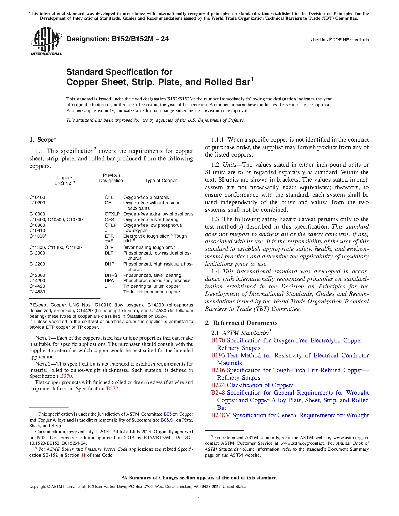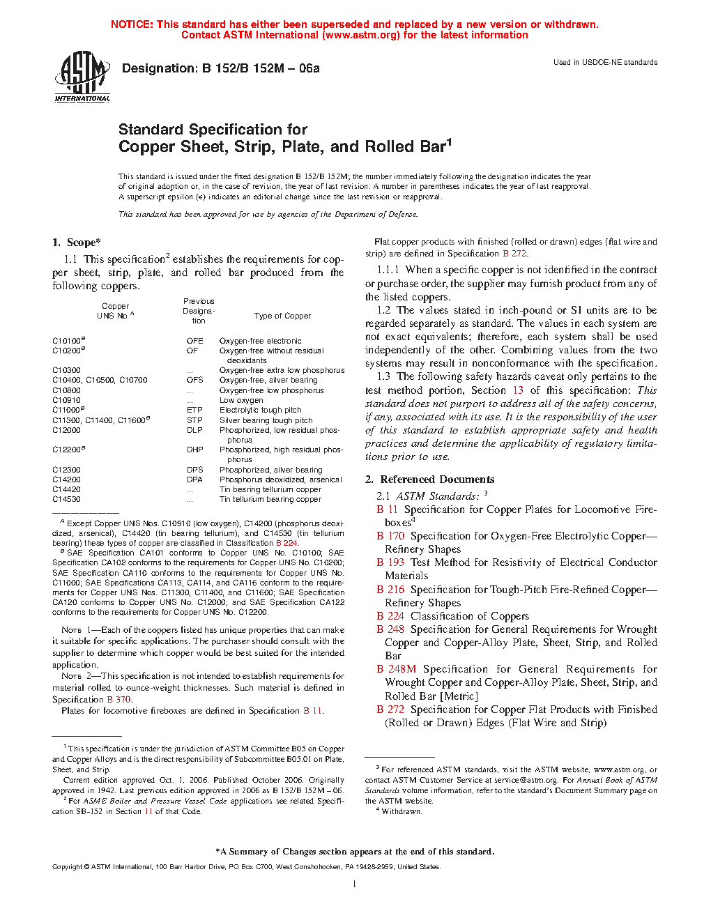 1.1 This specification2 establishes the requirements for copper sheet, strip, plate, and rolled bar produced from the following coppers.