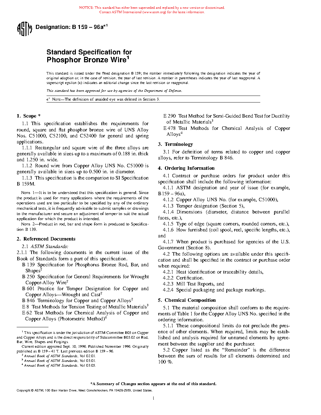 1.1.2 Round wire from Copper Alloy UNS No. C51000 is generally available in sizes up to 0.500 in. [13 mm] in diameter.