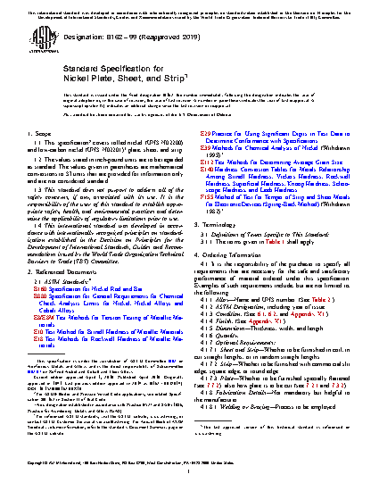 1.1 This specification covers rolled nickel (UNS N02200) and low-carbon nickel (UNS N02201)* plate, sheet, and strip.
