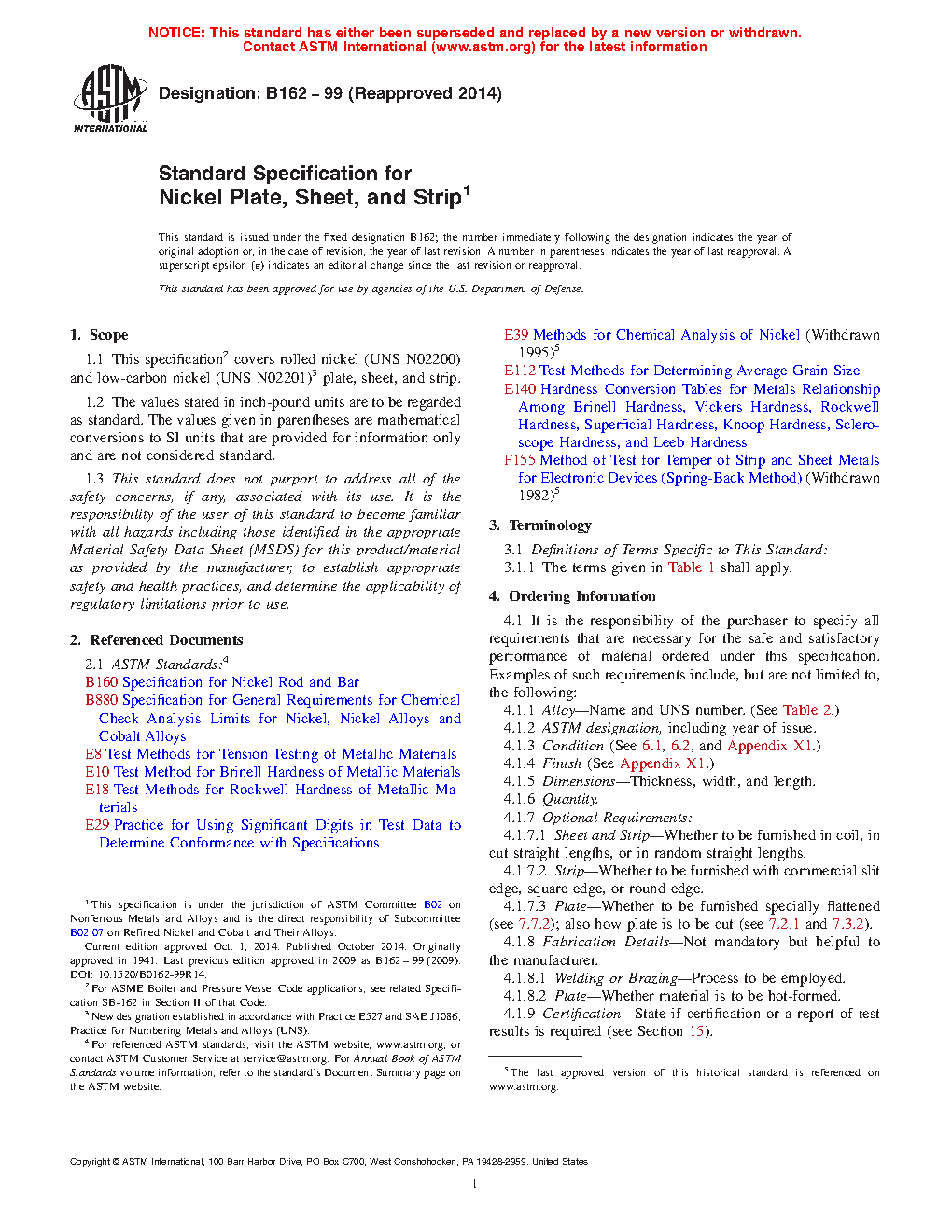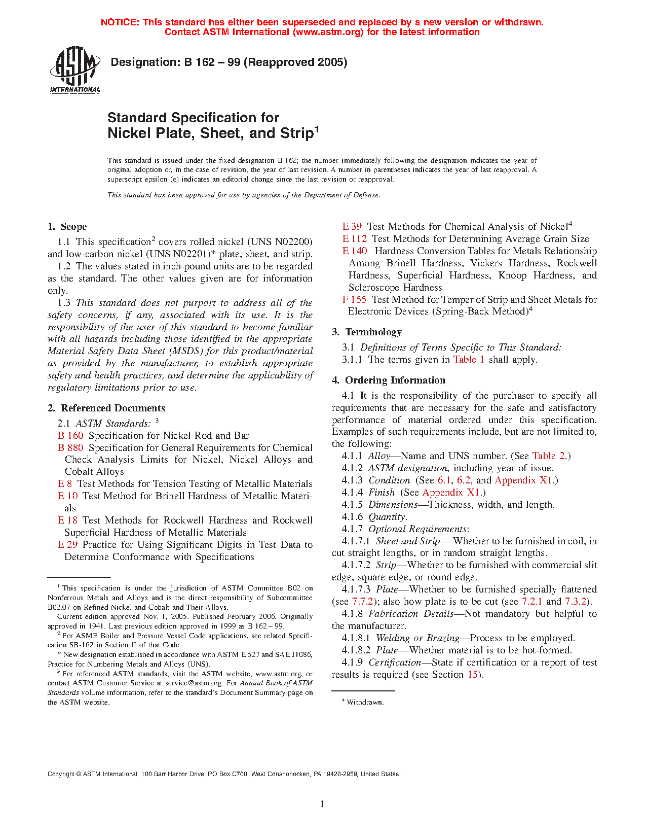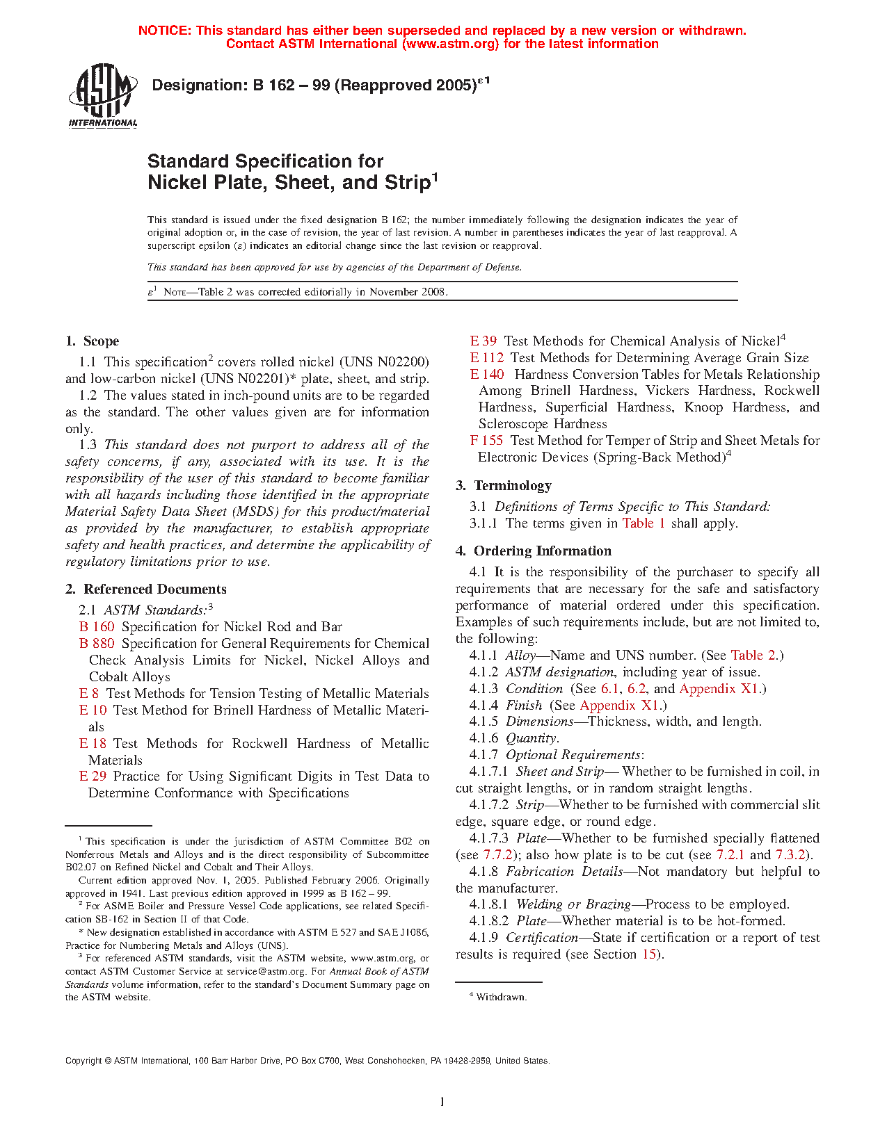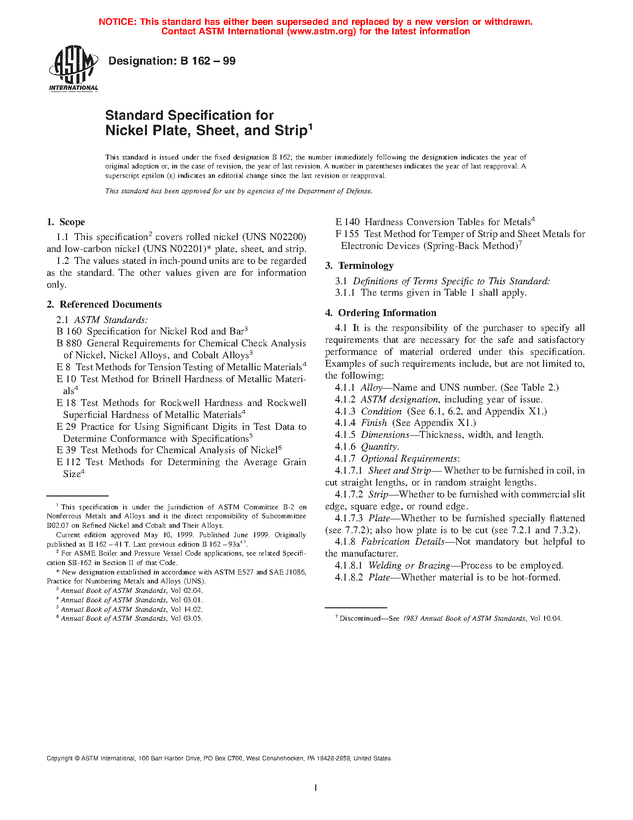 ASTM B162-99