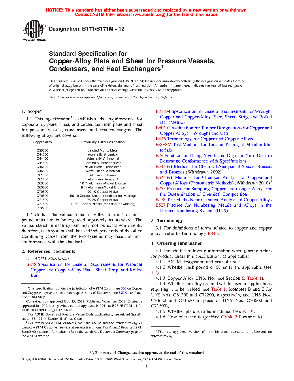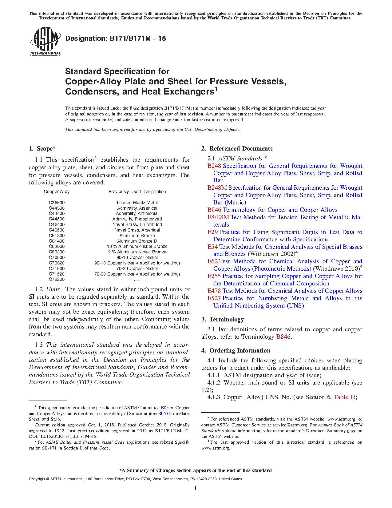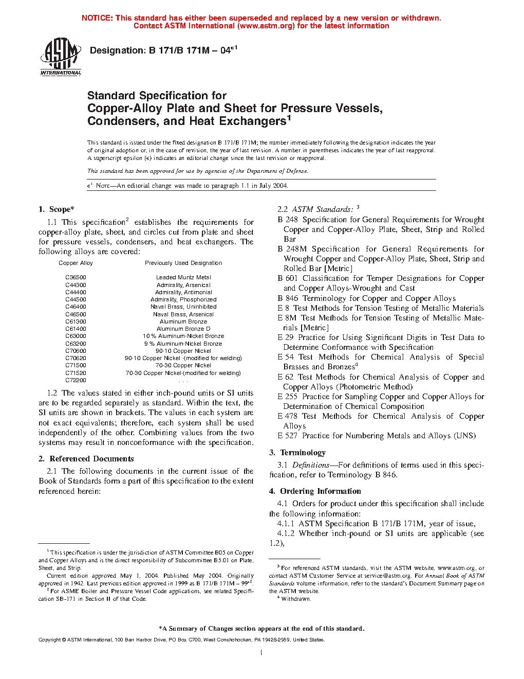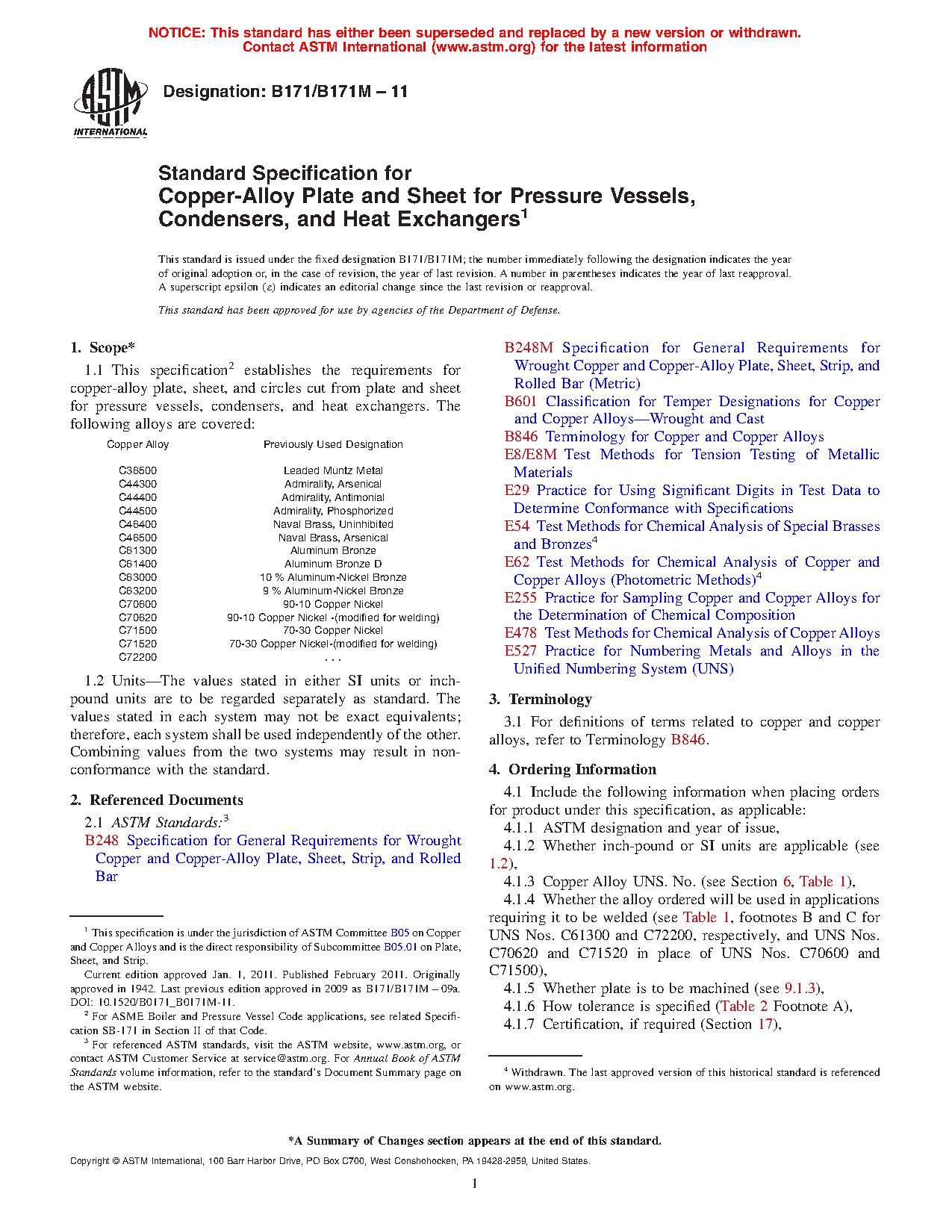 Standard Specification for Copper-Alloy Plate and Sheet for Pressure Vessels, Condensers, and Heat Exchangers