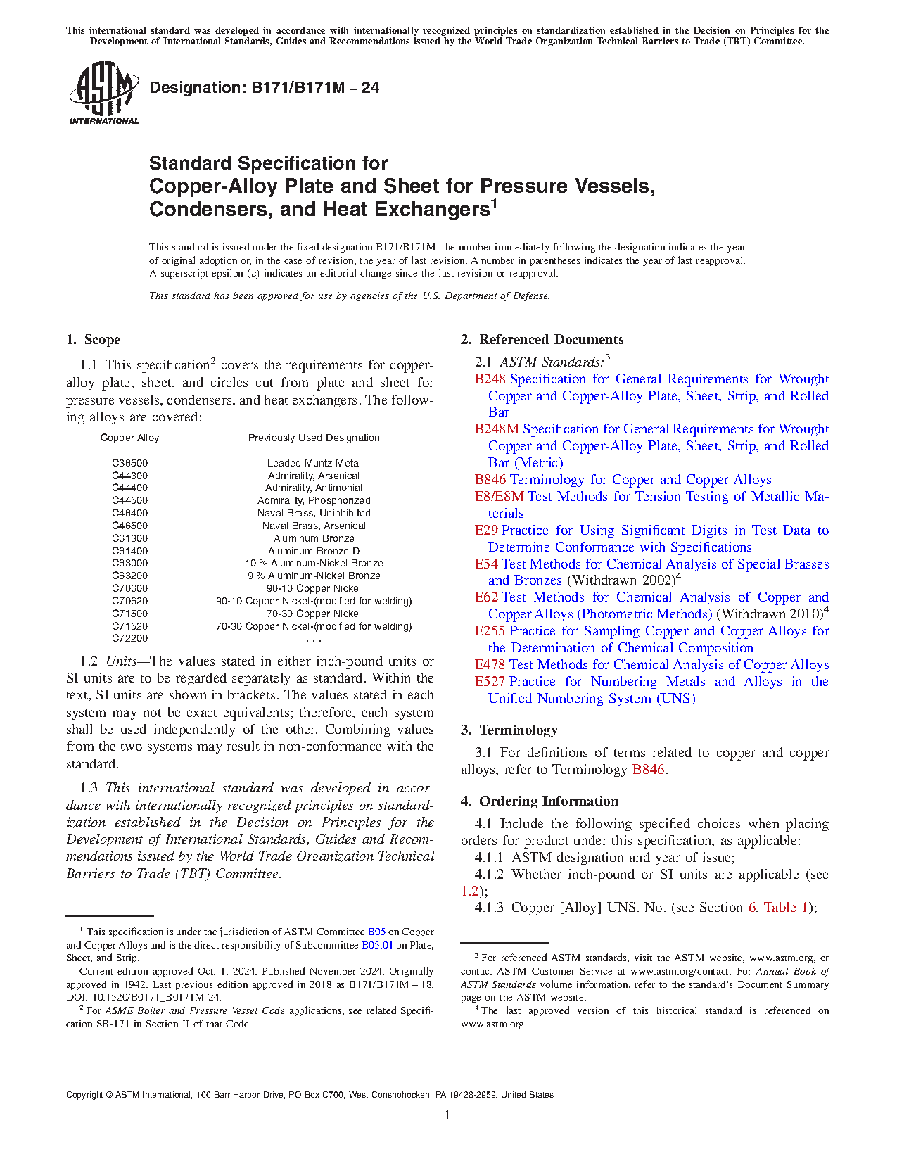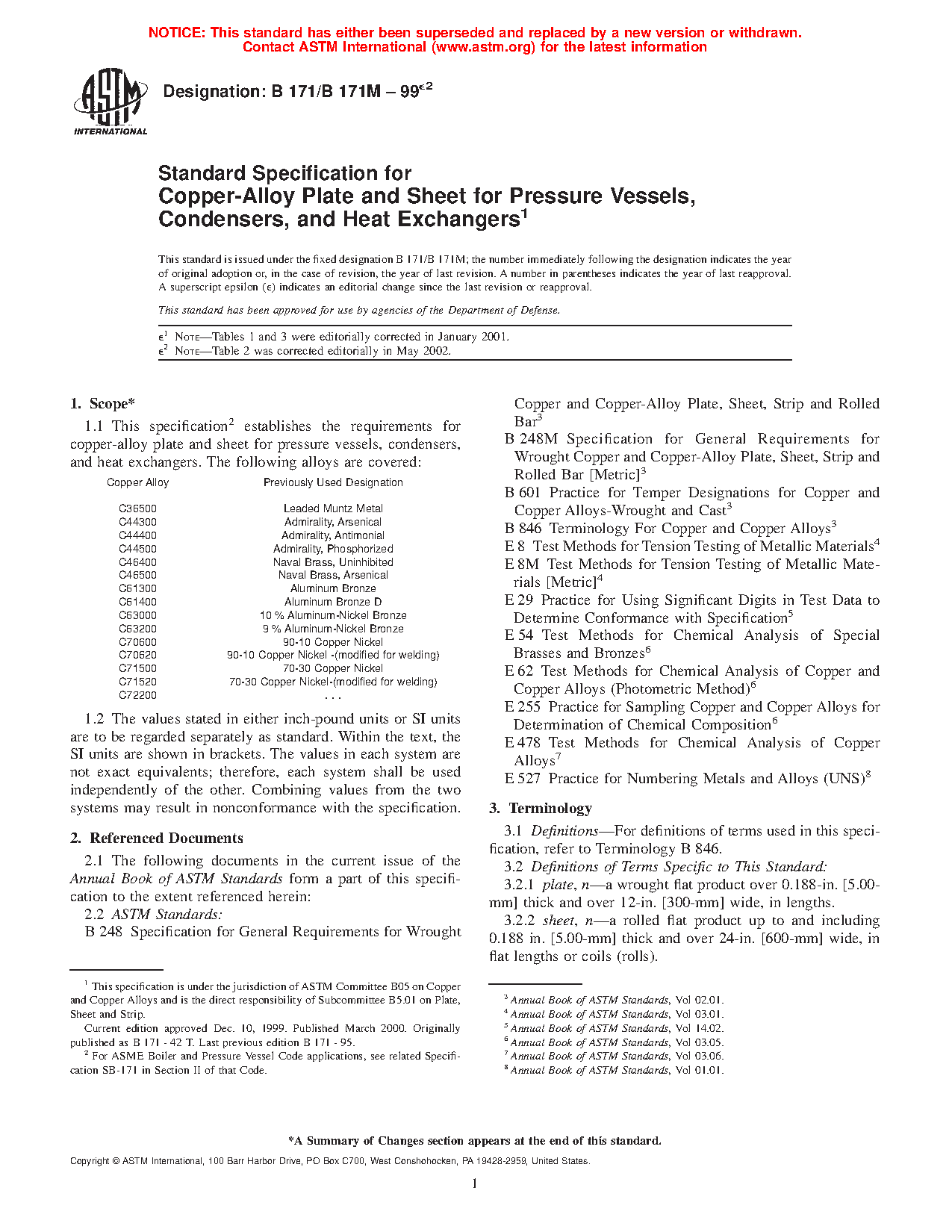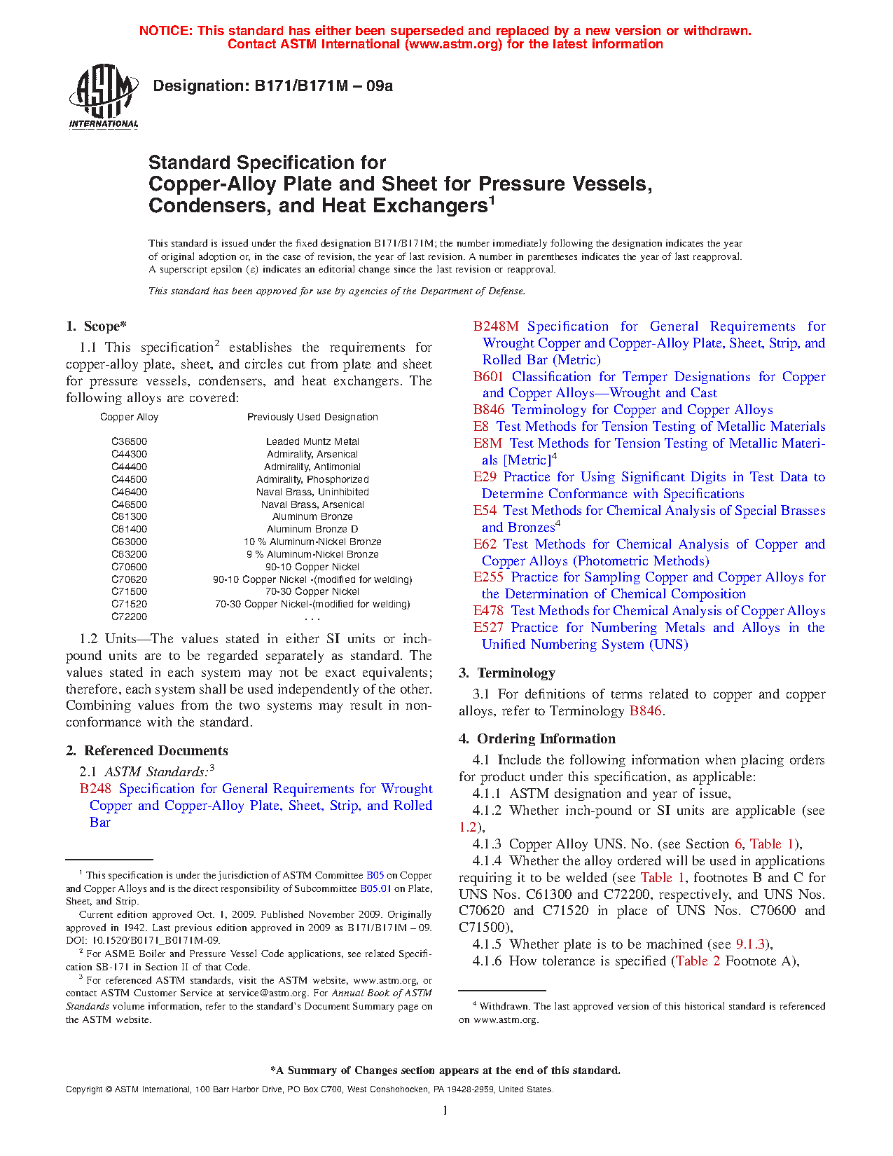 Standard Specification for Copper-Alloy Plate and Sheet for Pressure Vessels, Condensers, and Heat Exchangers