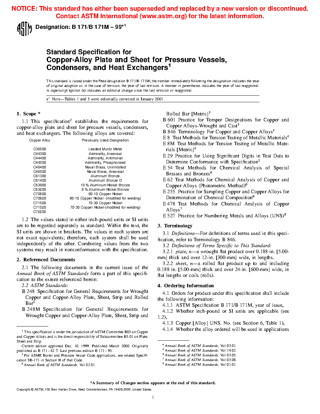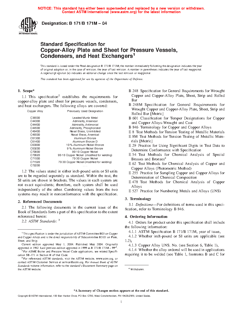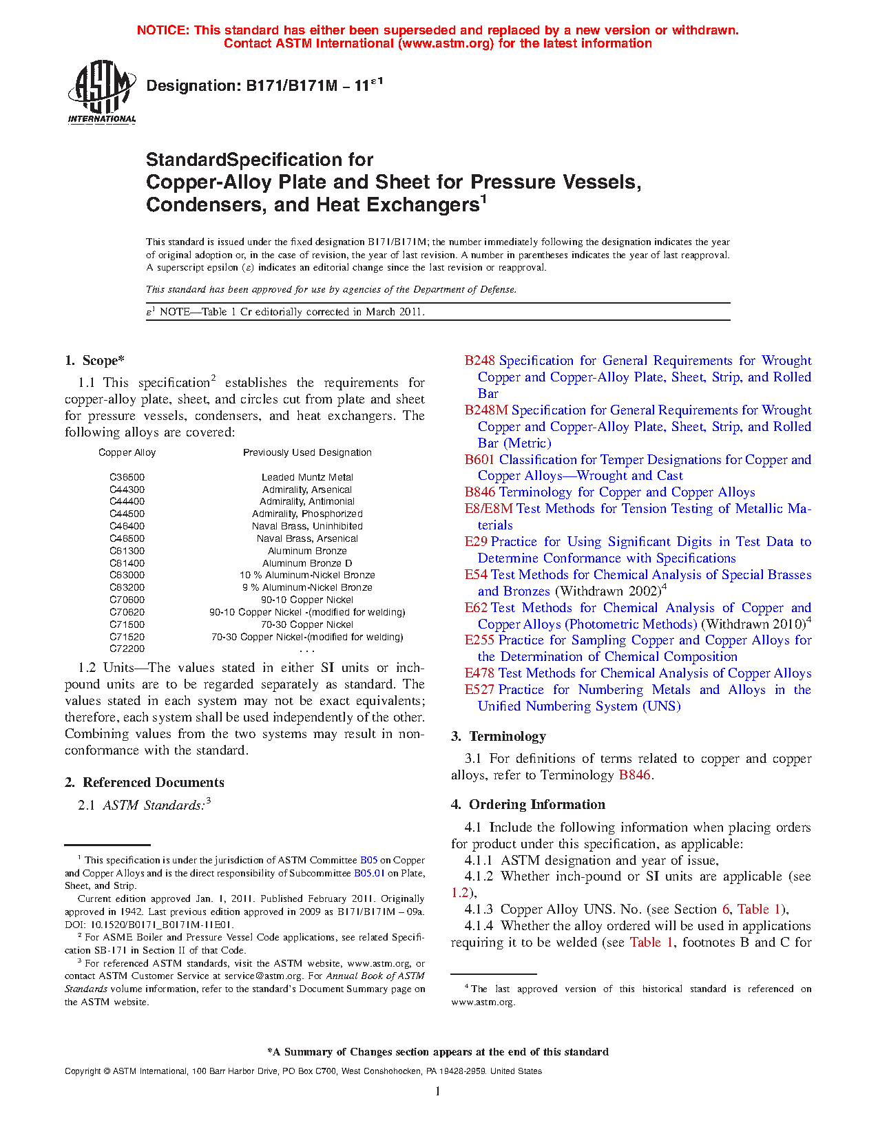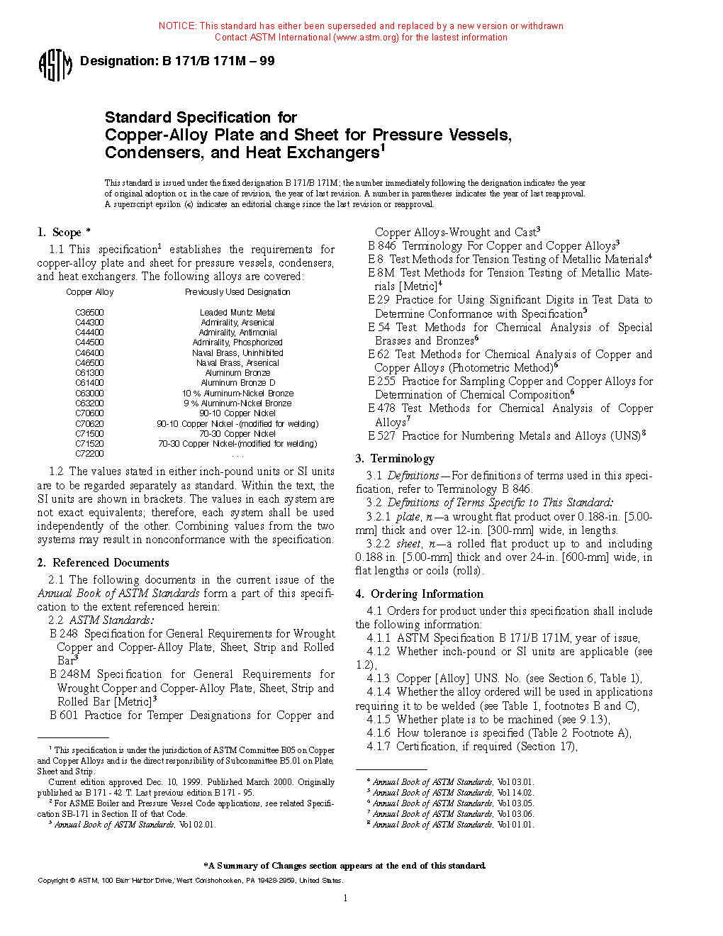 Standard Specification for Copper-Alloy Plate and Sheet for Pressure Vessels, Condensers, and Heat Exchangers
