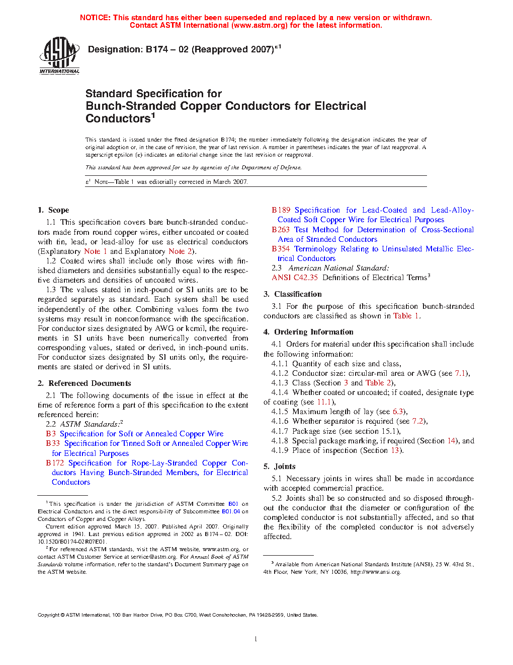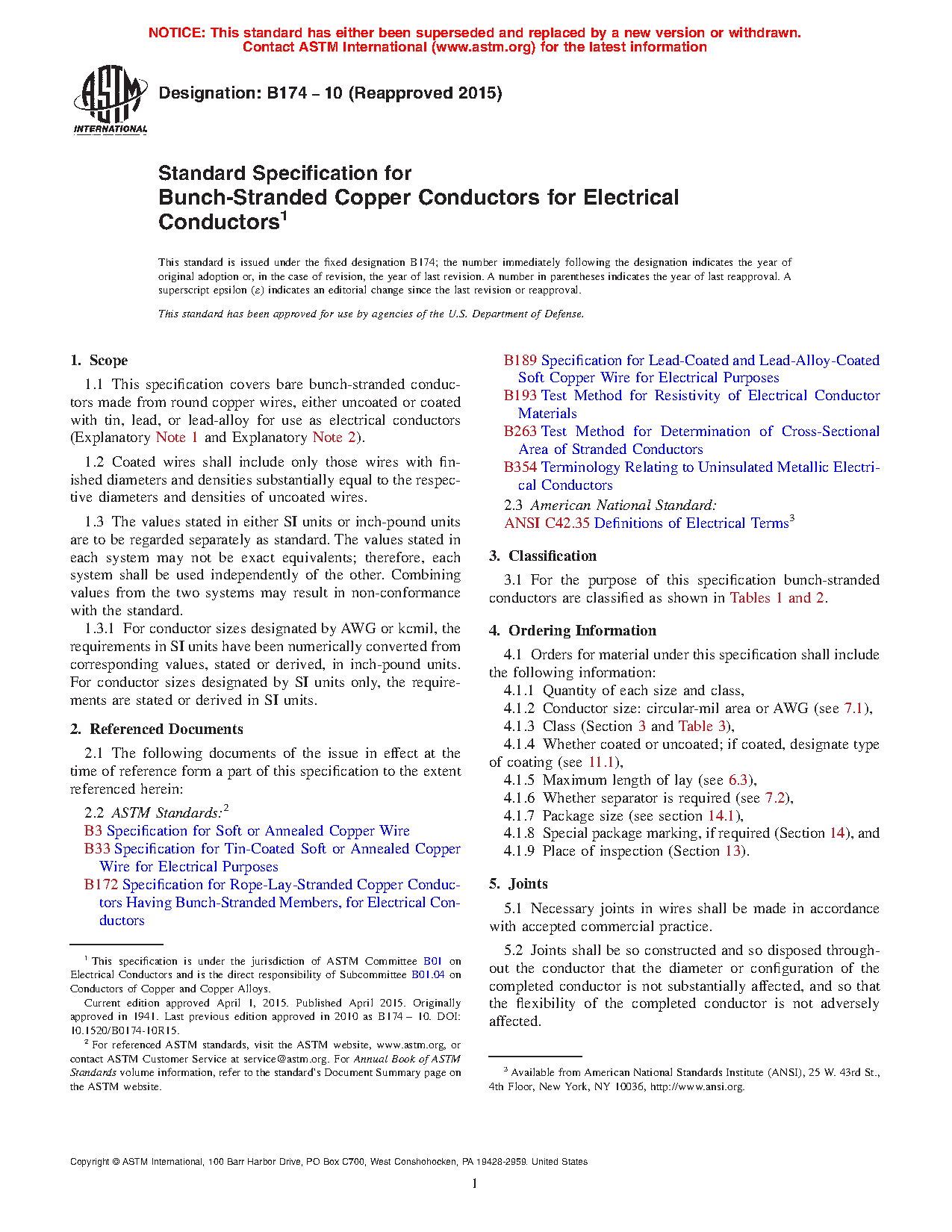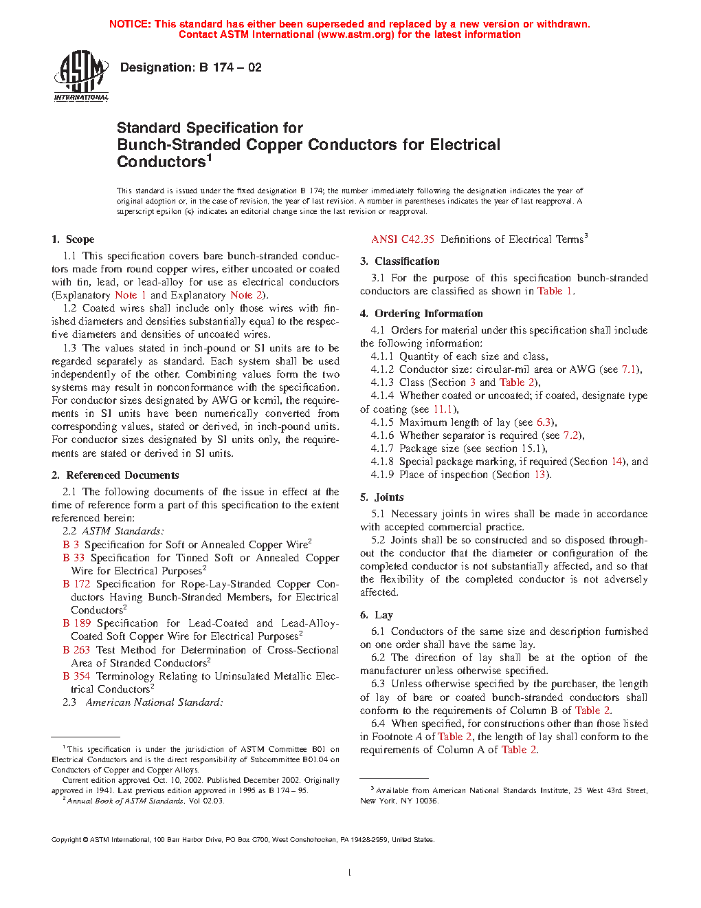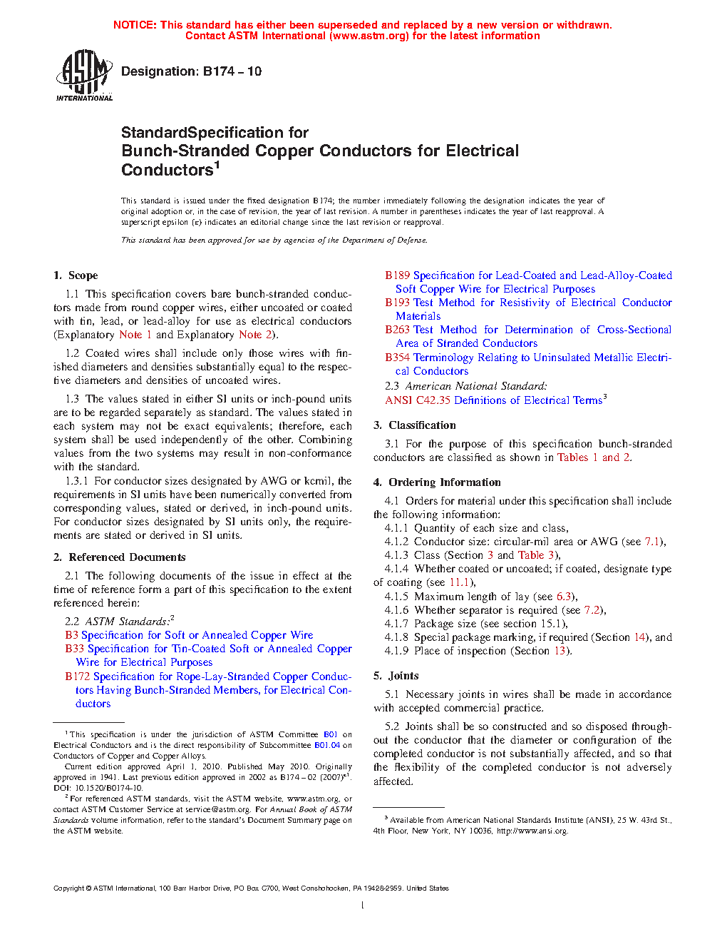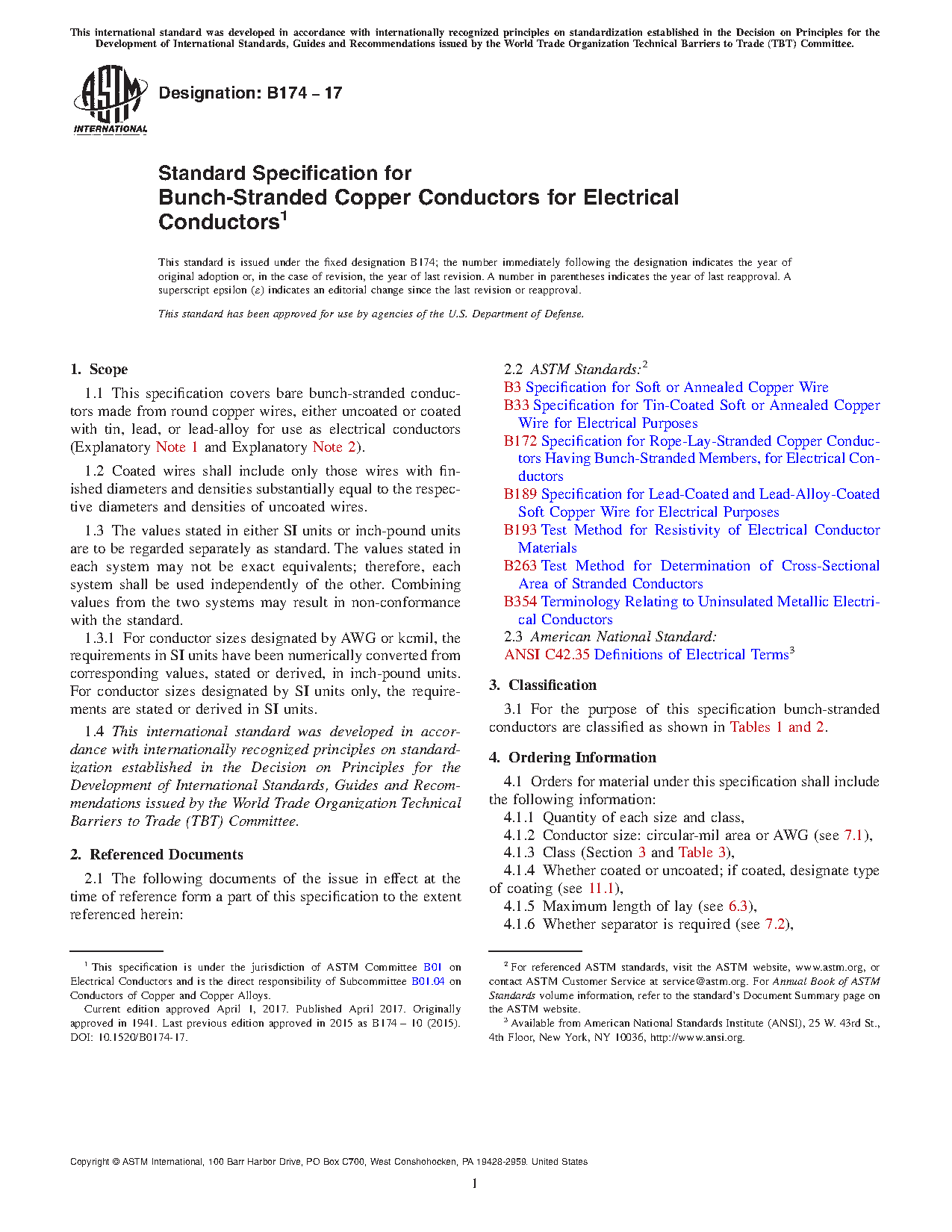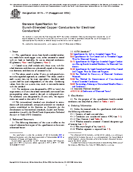 1.1 This specification covers bare bunch-stranded conductors made from round copper wires, either uncoated or coated with tin, lead, or lead-alloy for use as electrical conductors (Explanatory Note 1 and Explanatory Note 2).