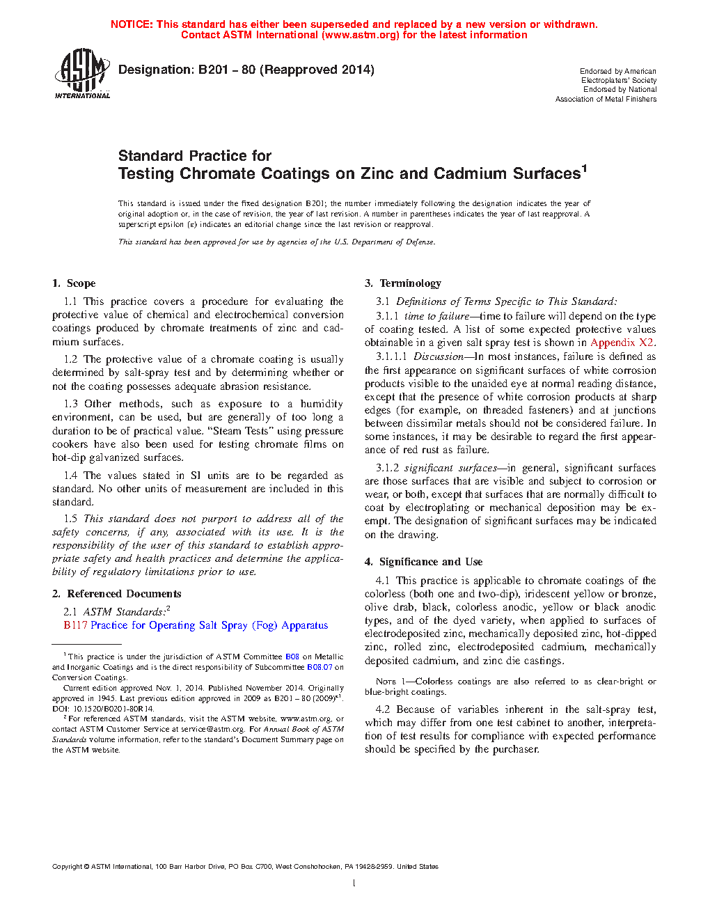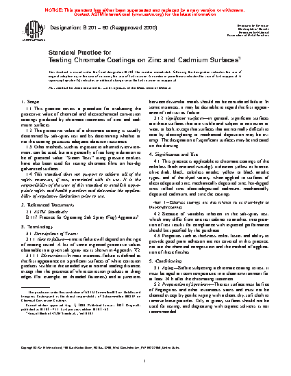 1.2 The protective value of a chromate coating is usually determined by salt-spray test and by determining whether or not the coating possesses adequate abrasion resistance.