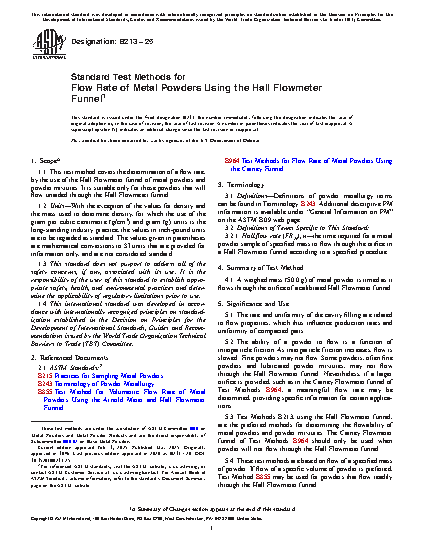 5.3 Test Method B213, using the Hall Flowmeter funnel, is the preferred method for determining the flowability of metal powders and powder mixtures. The Carney Flowmeter funnel of Method B964 should only be used when powder will not flow through the Hall Flowmeter funnel.