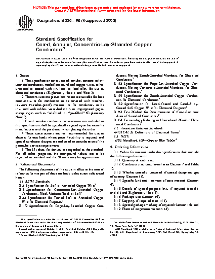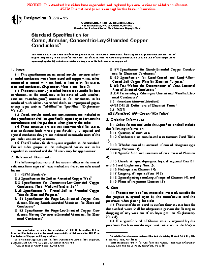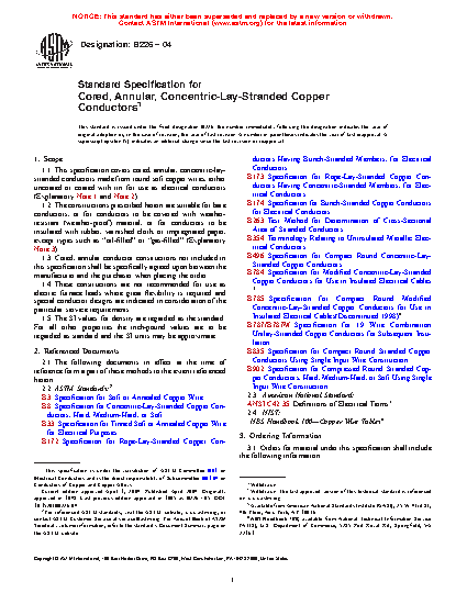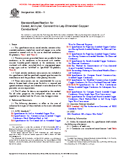 1.1 This specification covers cored, annular, concentric-lay-stranded conductors made from round soft copper wires, either uncoated or coated with tin for use as electrical conductors (Explanatory Note 1 and 2).