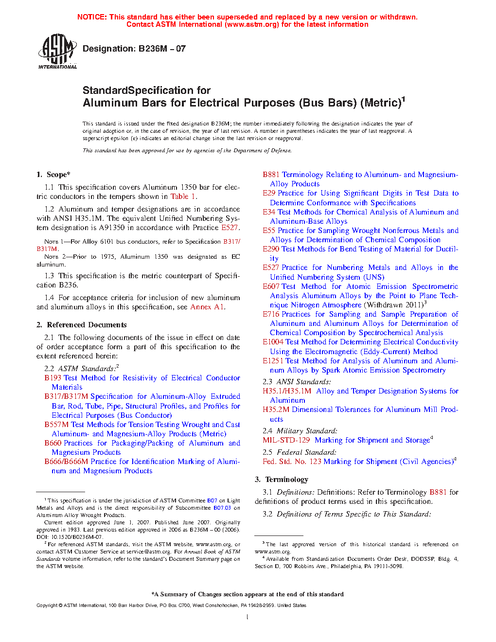 Note 1-For Alloy 6101 bus conductors, refer to Specification B317. Note 2-Prior to 1975, Aluminum 1350 was designated as EC aluminum.1.3 This specification is the metric counterpart of Specification B236.