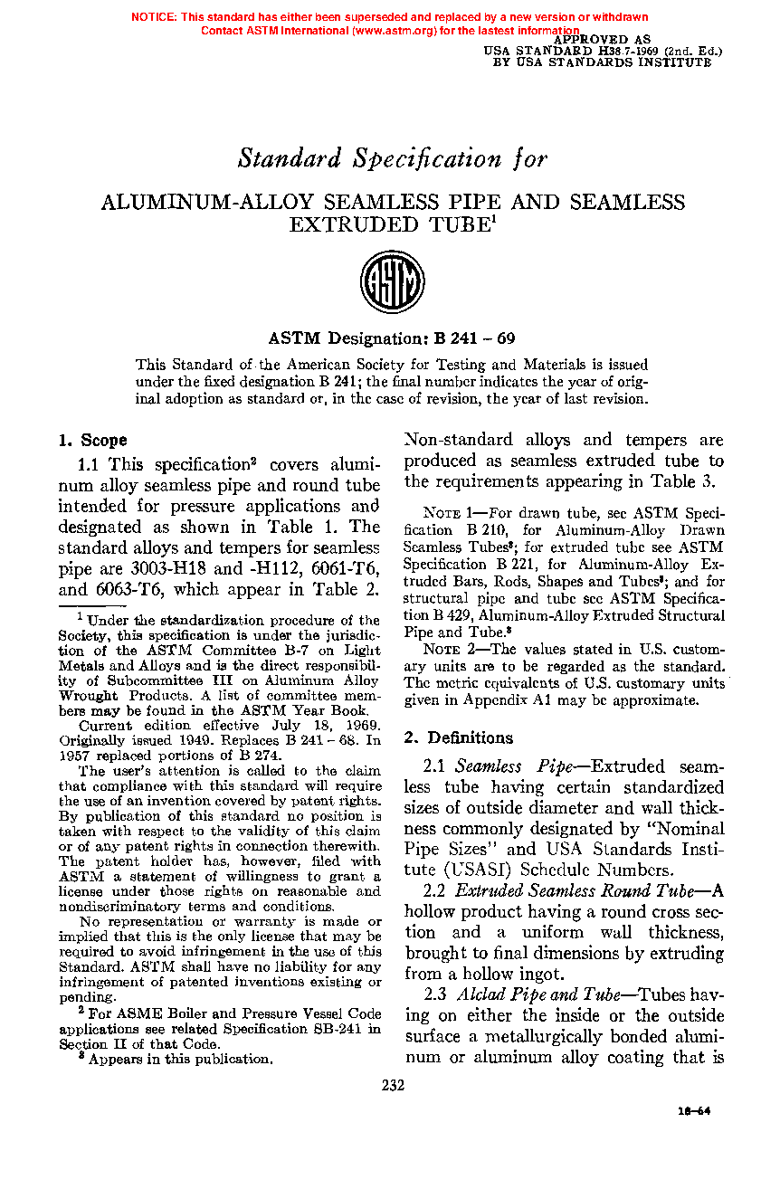 Standard Specification for Aluminum and Aluminum-Alloy Seamless Pipe and Seamless Extruded Tube
