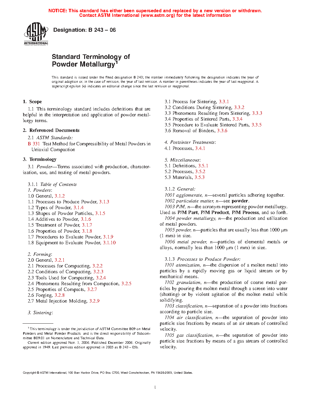 1.1 This terminology includes definitions of terms that are specific to the powder metallurgy industry. These definitions are helpful in the interpretation and application of powder metallurgy terms.