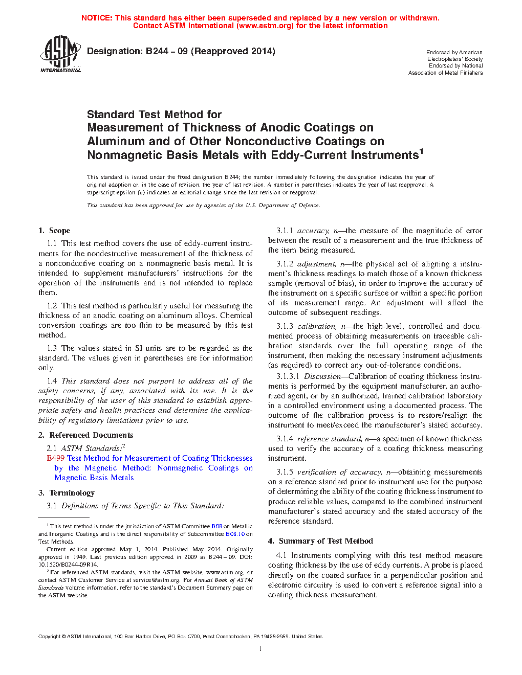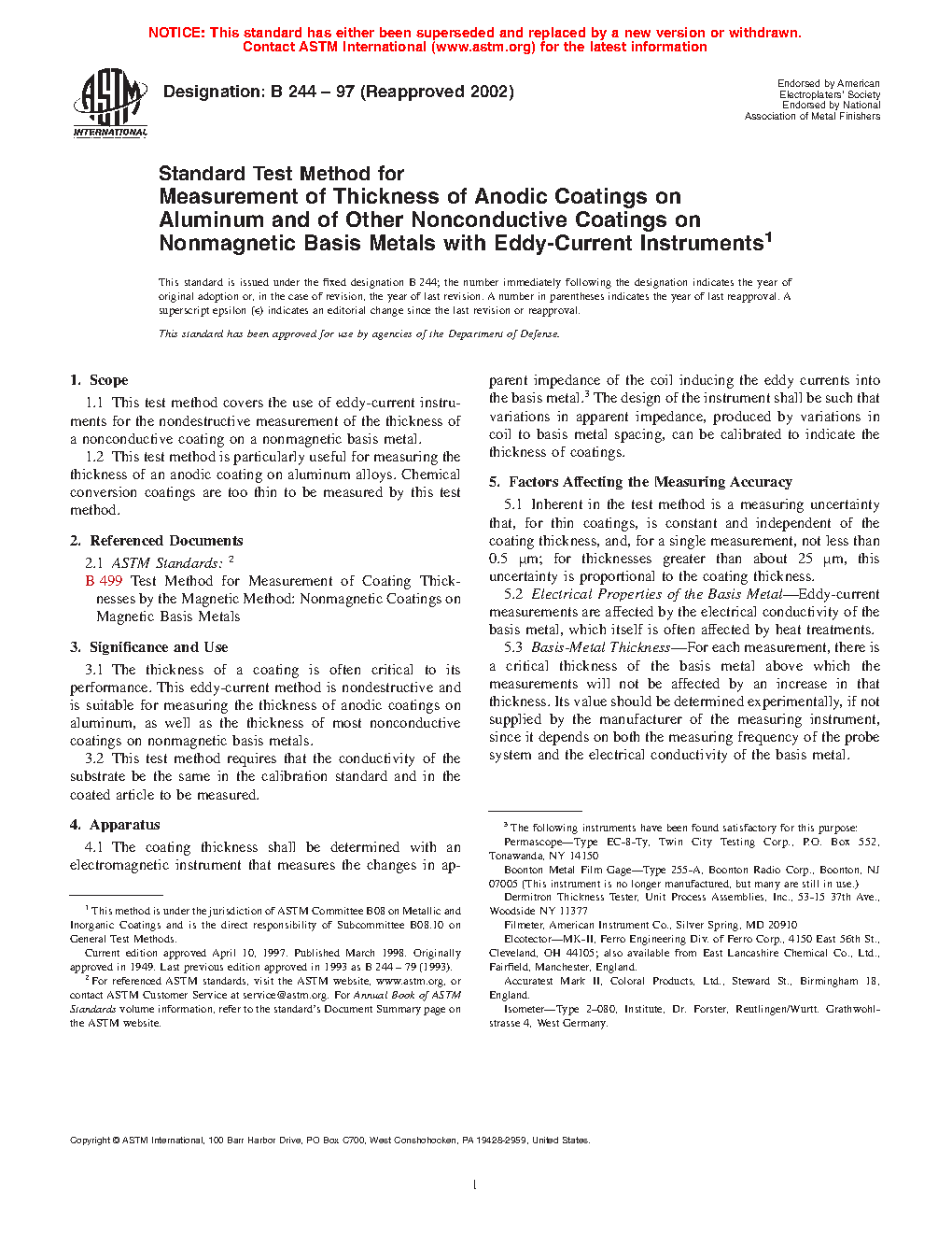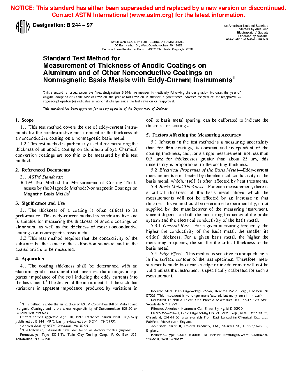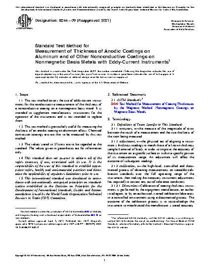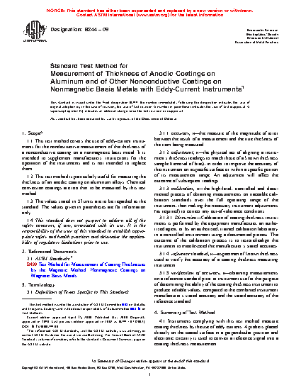 1.1 This test method covers the use of eddy-current instruments for the nondestructive measurement of the thickness of a nonconductive coating on a nonmagnetic basis metal.