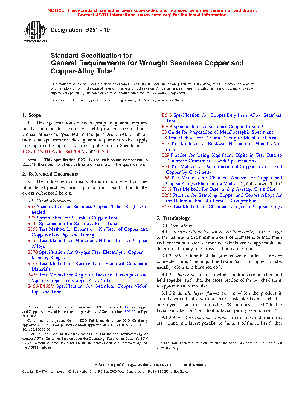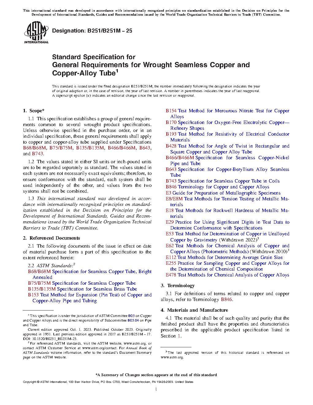 1.1 This specification covers a group of general requirements common to several wrought product specifications. Unless otherwise specified in the purchase order, or in an individual specification, these general requirements shall apply to copper and copper-alloy tube supplied under Specifications B68/B68M, B75/B75M, B135/B135M, B466/B466M, B643 and B743.