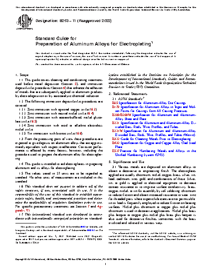1.4 This guide is intended to aid electroplaters in preparing aluminum and its alloys for electroplating.