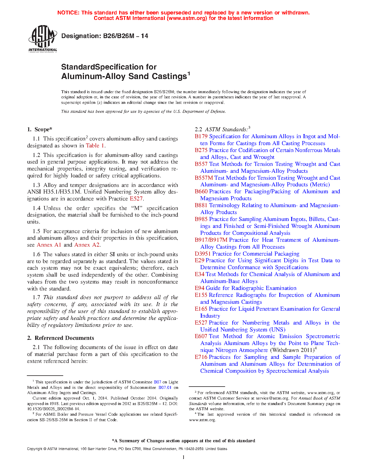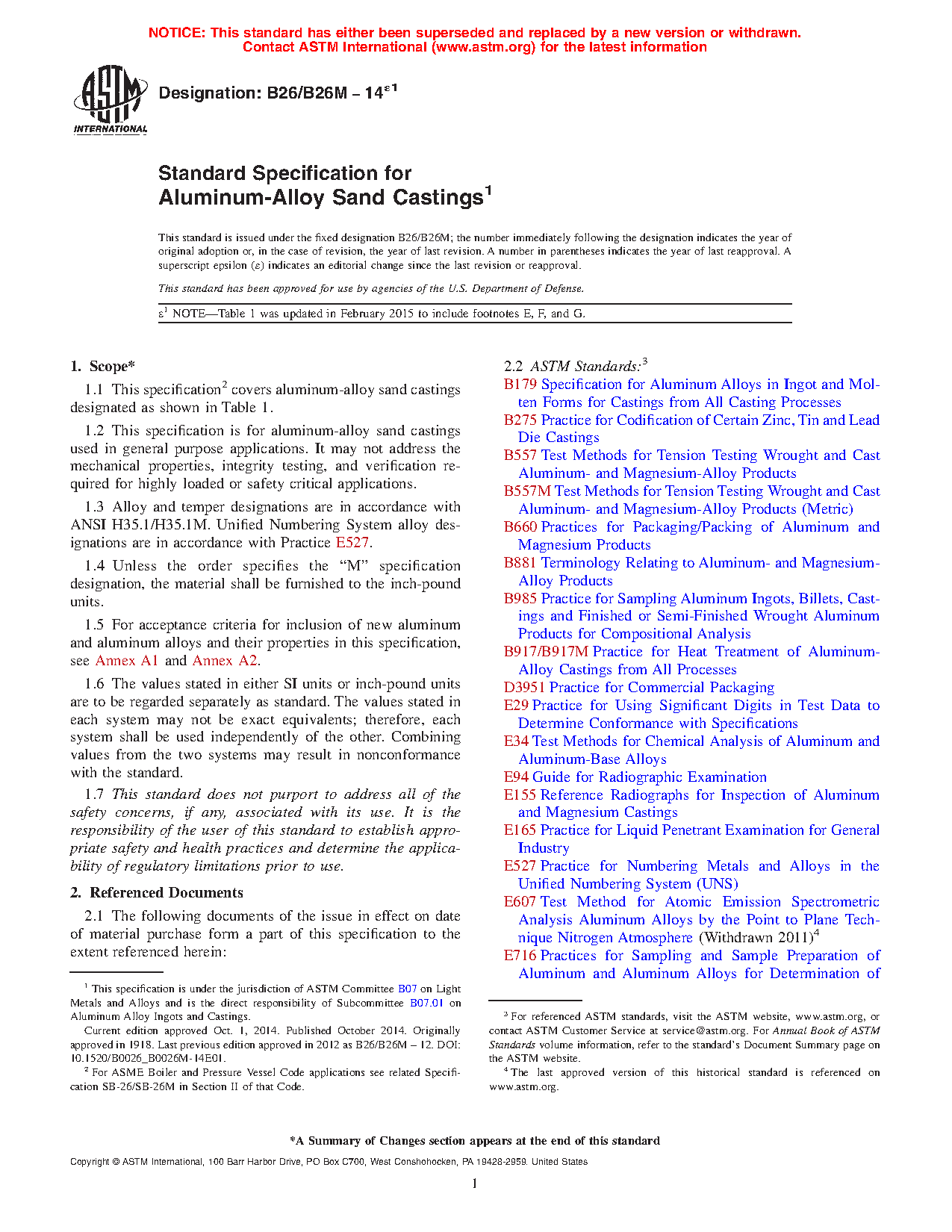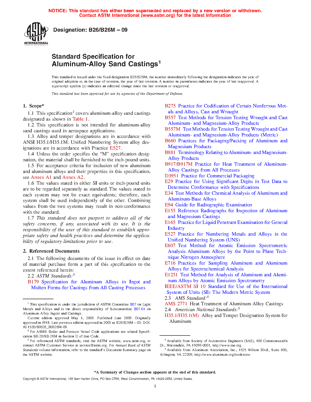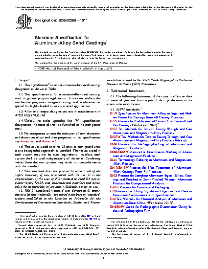 1.1 This specification covers aluminum-alloy sand castings designated as shown in Table 1.