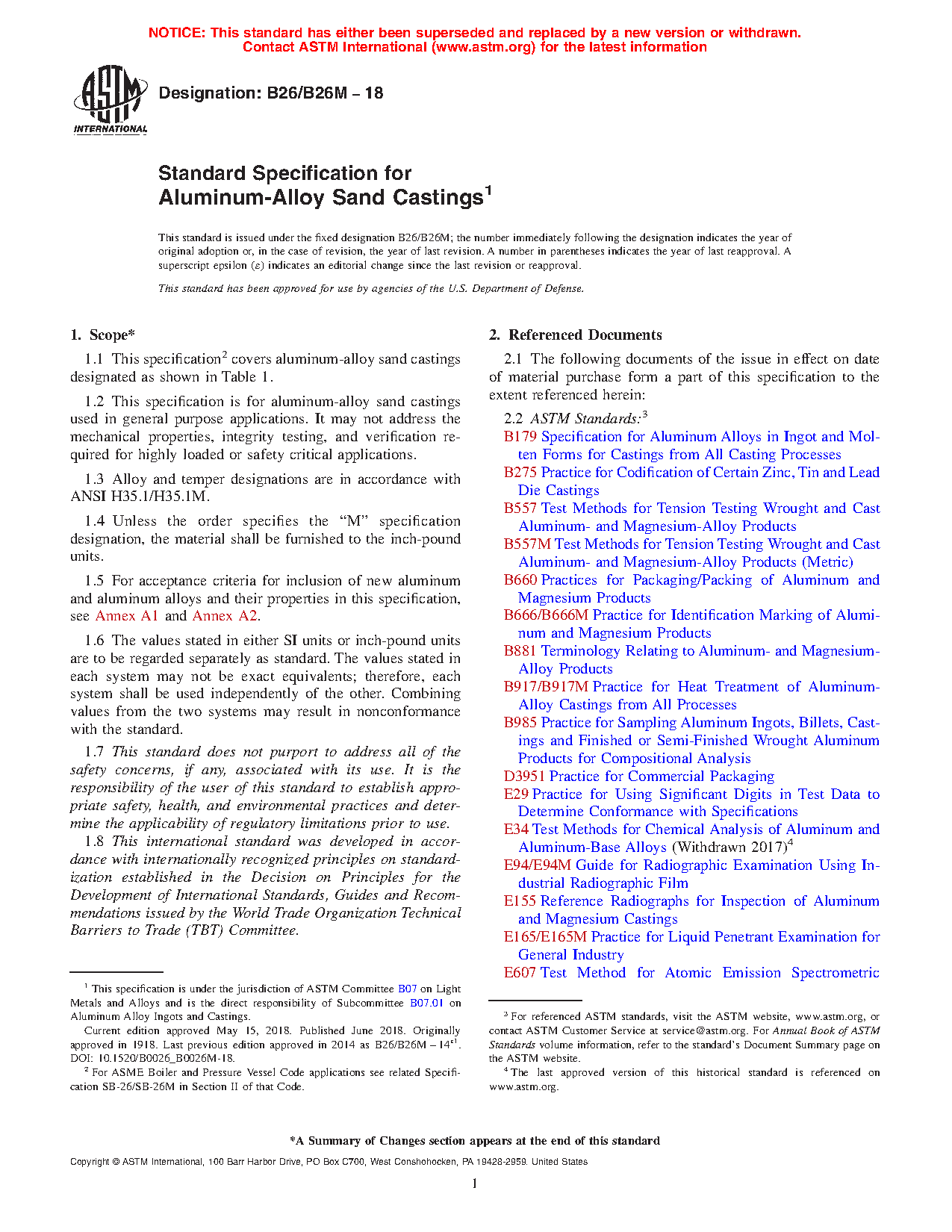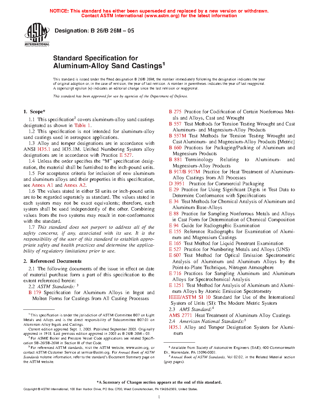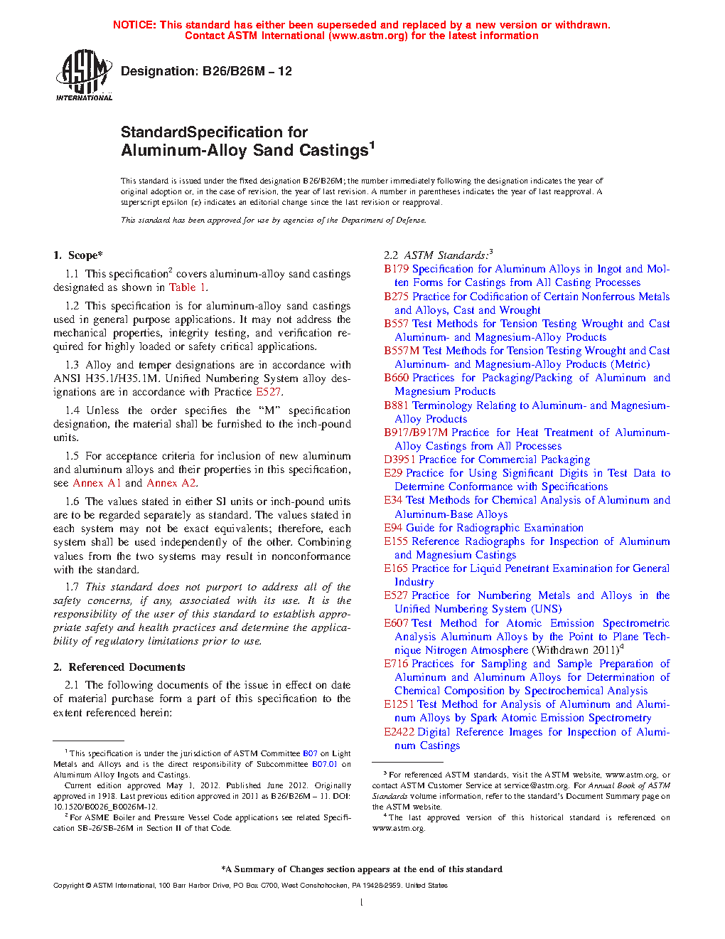 1.1 This specification covers aluminum-alloy sand castings designated as shown in Table 1.