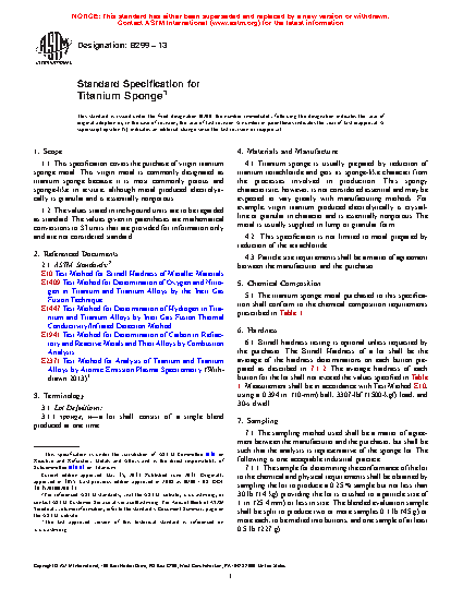 1.1 This specification covers the purchase of virgin titanium sponge metal. This virgin metal is commonly designated as titanium sponge because it is most commonly porous and sponge-like in texture, although metal produced electrolytically is granular and is essentially nonporous.