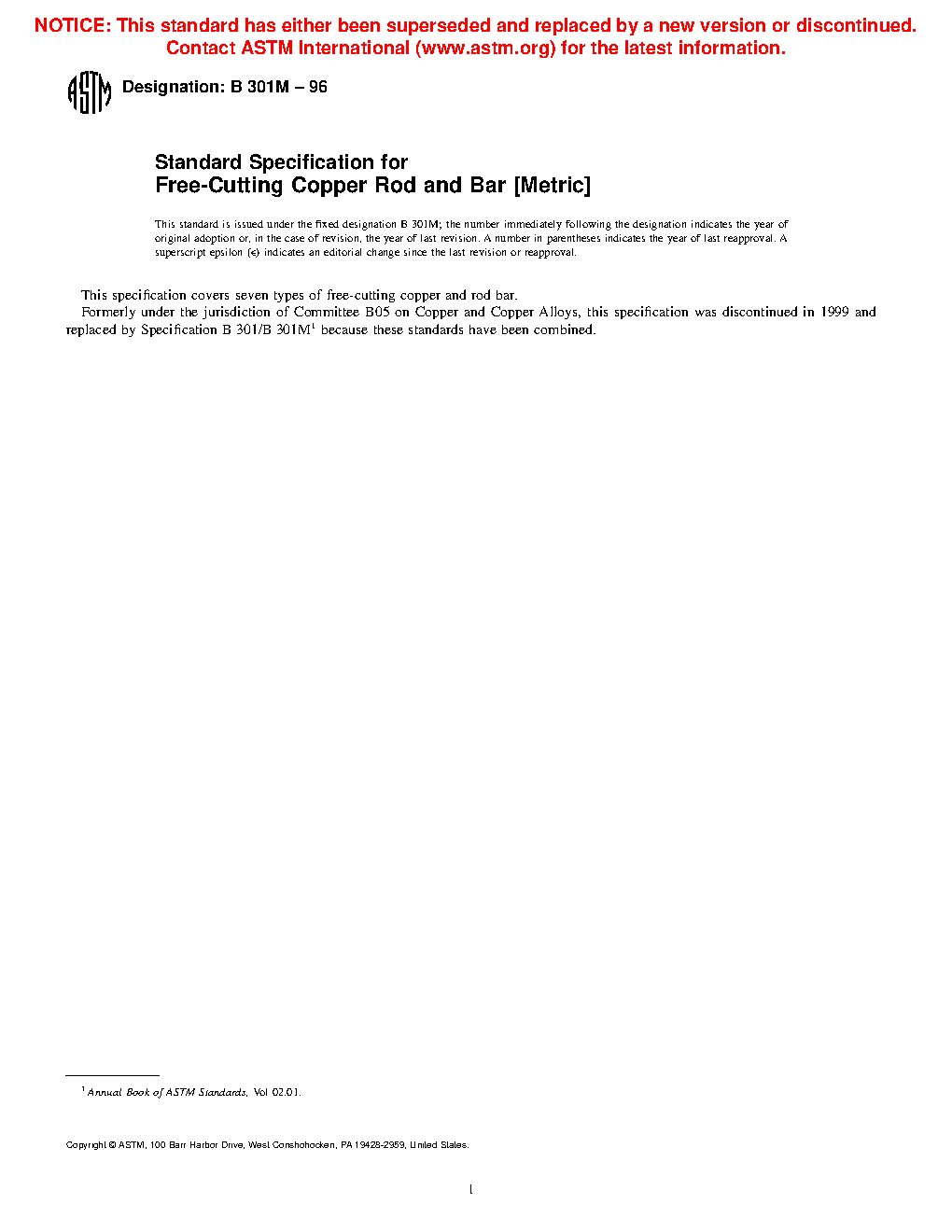 Standard Specification for Free-Cutting Copper Rod and Bar [Metric] (Withdrawn 1999)