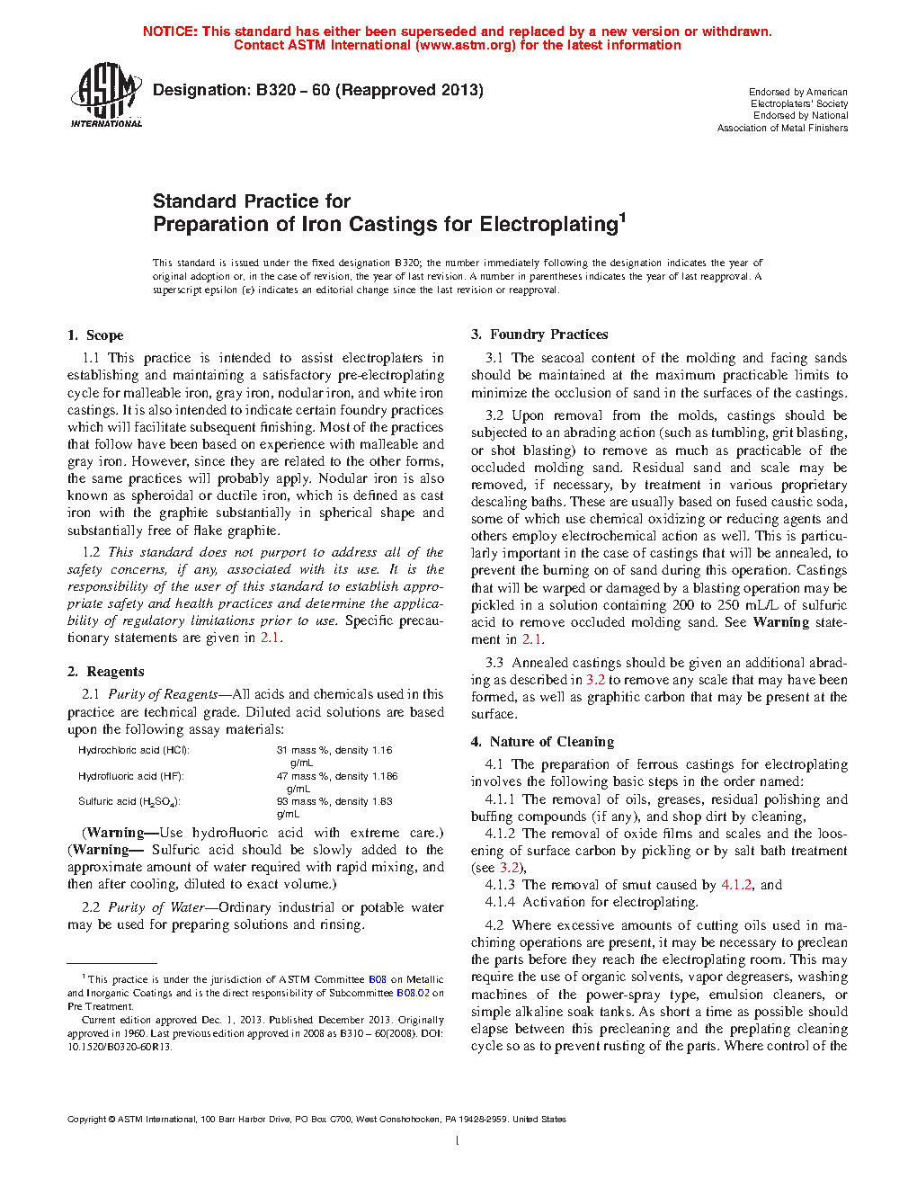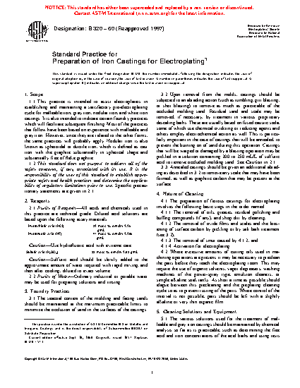 2.1 The proper establishment and maintenance of a pre-electroplating cycle for iron castings is often critical to facilitate subsequent finishing.