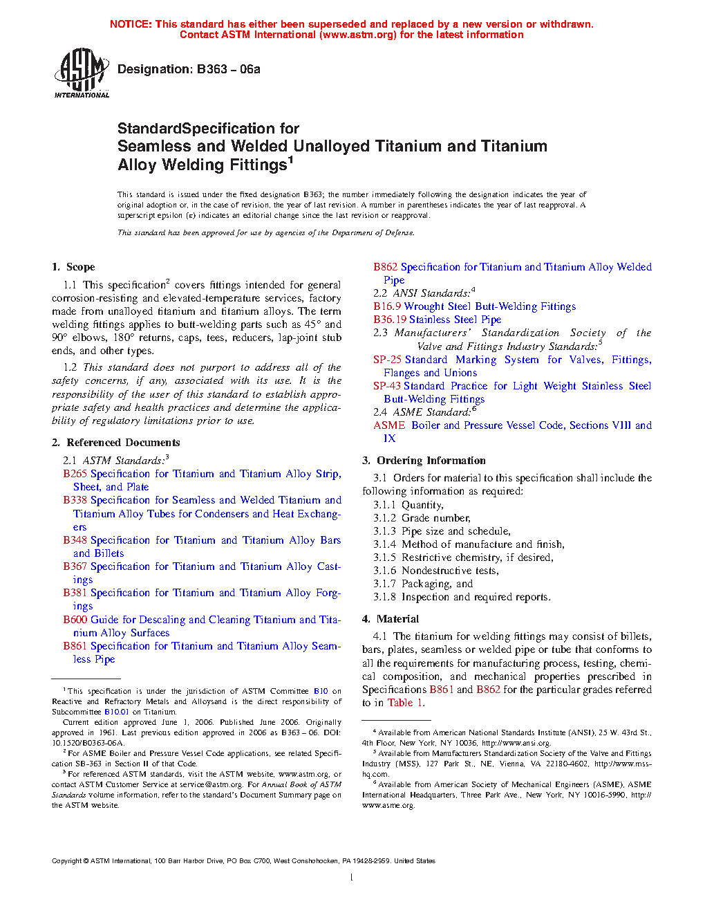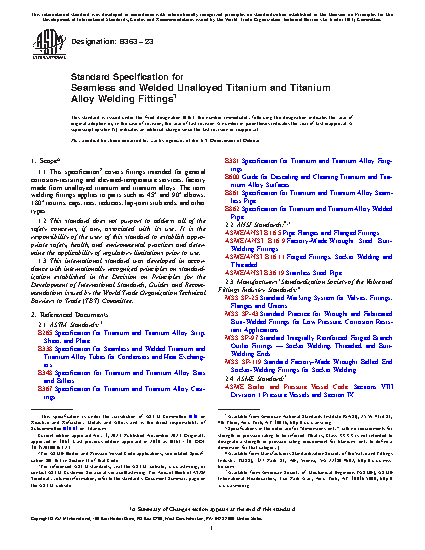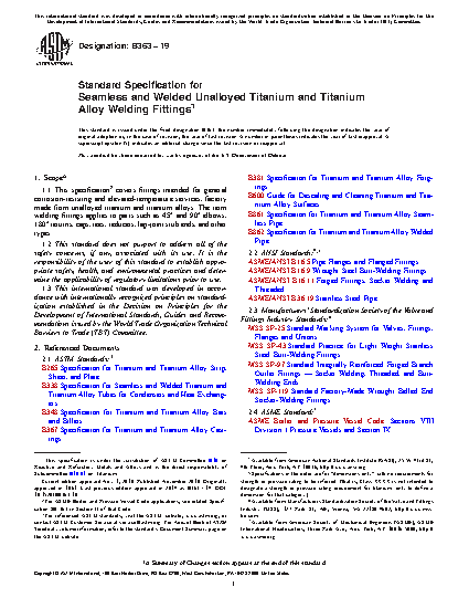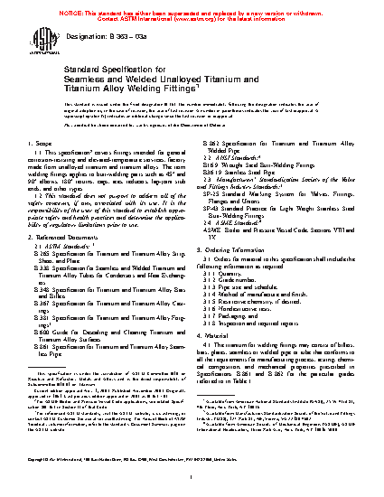 1.1 This specification2 covers fittings intended for general corrosion-resisting and elevated-temperature services, factory made from unalloyed titanium and titanium alloys. The term welding fittings applies to parts such as 45° and 90° elbows, 180° returns, caps, tees, reducers, lap-joint stub ends, and other types.