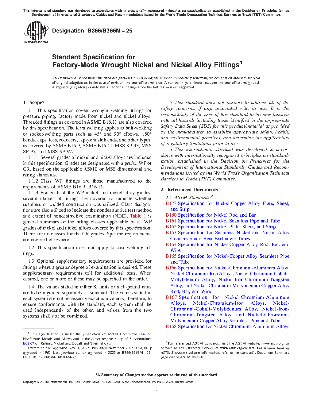 1.1.3 For each of the WP nickel and nickel alloy grades, several classes of fittings are covered to indicate whether seamless or welded construction was utilized. Class designations are also utilized to indicate the nondestructive test method and extent of nondestructive examination (NDE). Table 1 is general summary of the fitting classes applicable to all WP grades of nickel and nickel alloys covered by this specification. There are no classes for the CR grades. Specific requirements are covered elsewhere.