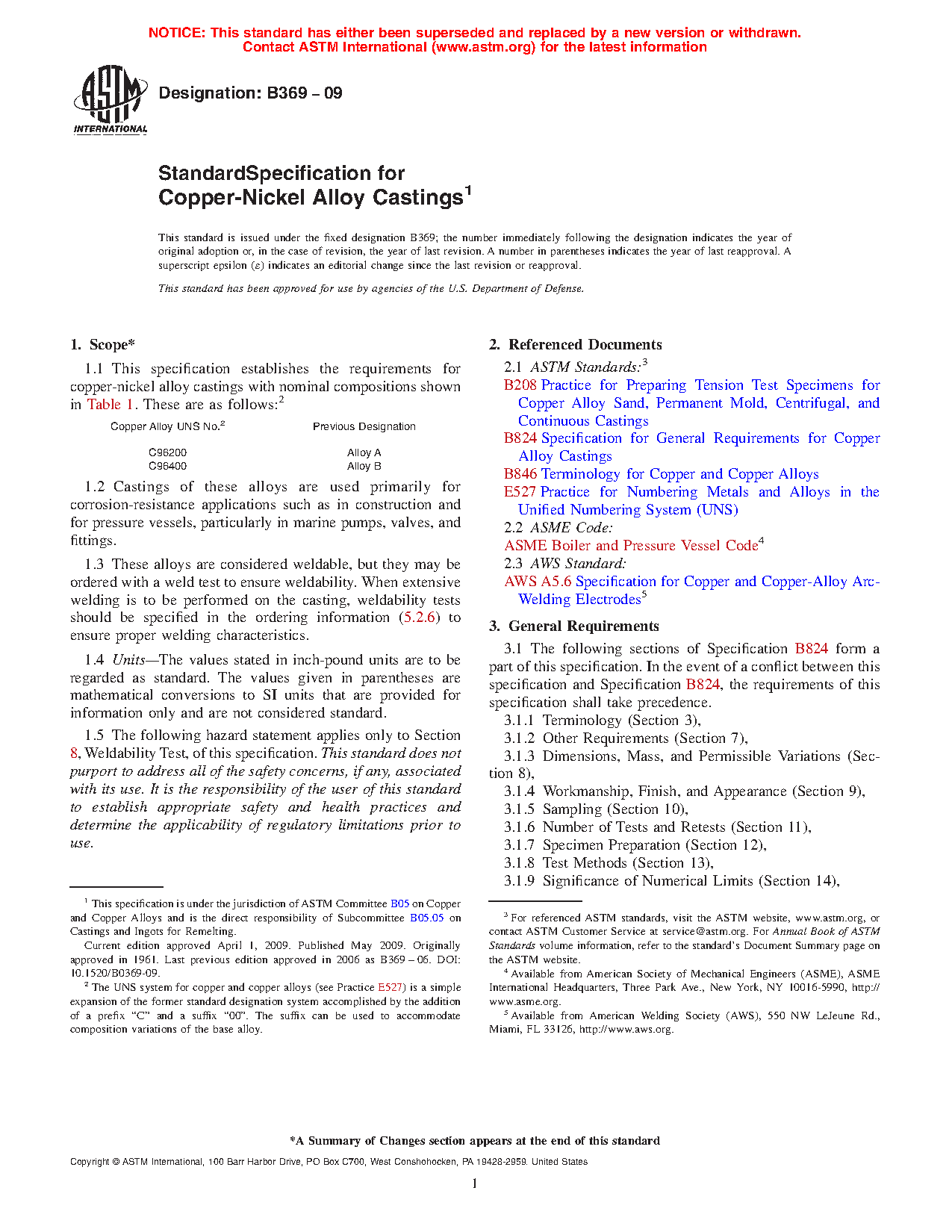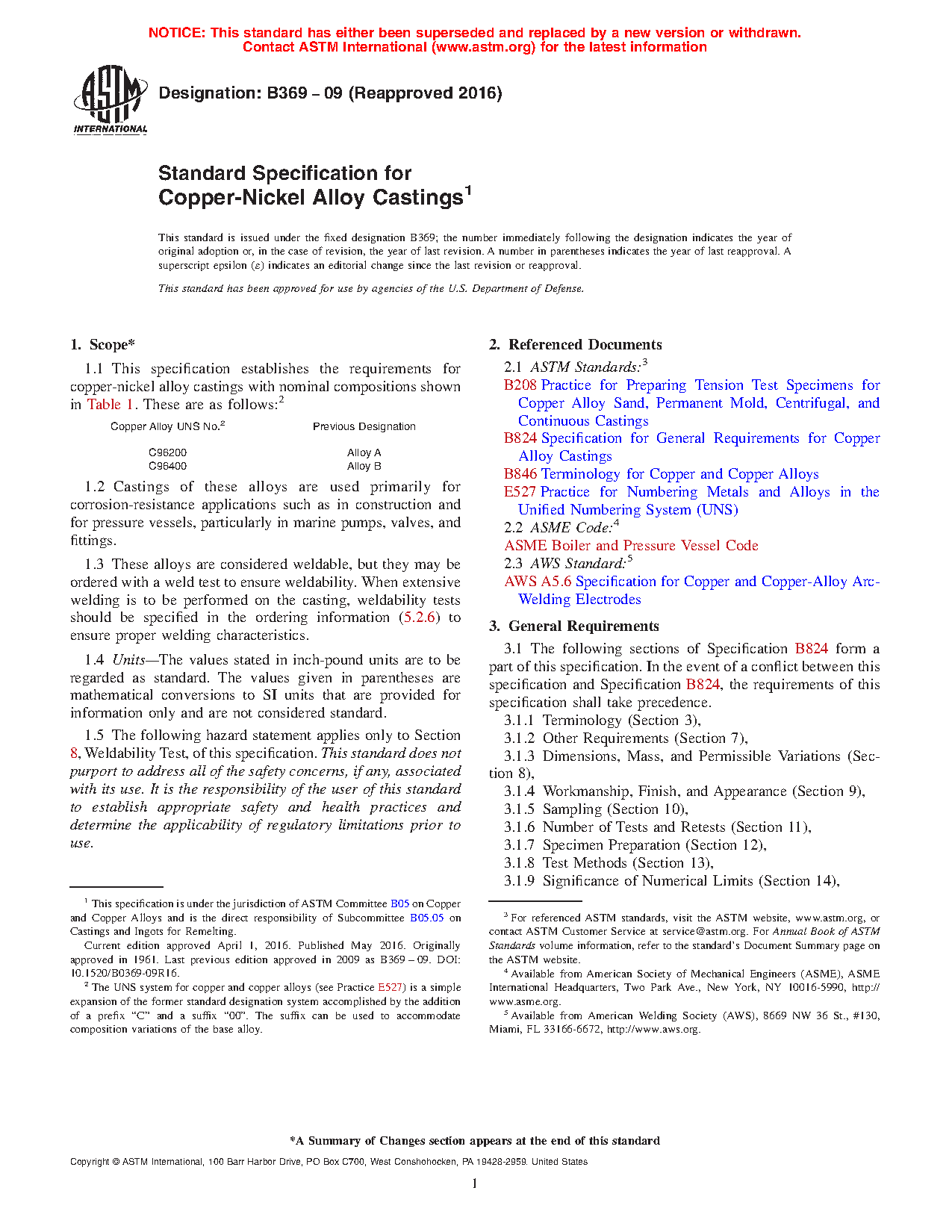 1.1 This specification establishes the requirements for copper-nickel alloy castings with nominal compositions shown in Table 1. These are as follows:2