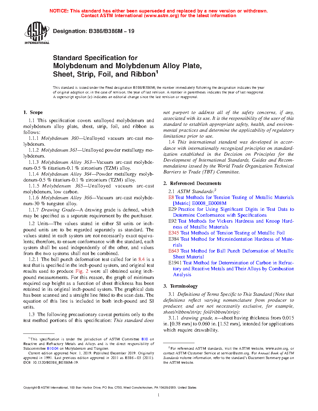 1.1 This specification covers unalloyed molybdenum and molybdenum alloy plate, sheet, strip, foil, and ribbon as follows: