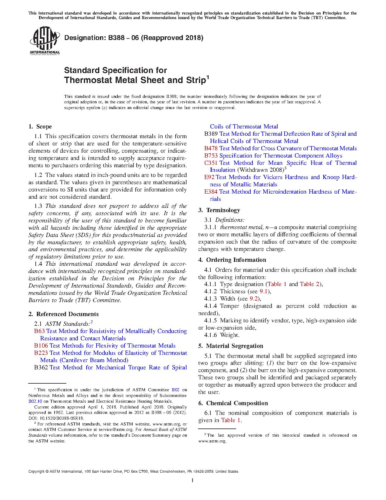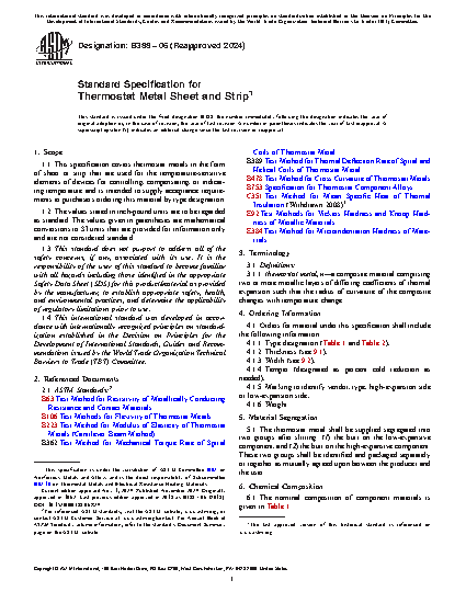 1.1 This specification covers thermostat metals in the form of sheet or strip that are used for the temperature-sensitive elements of devices for controlling, compensating, or indicating temperature and is intended to supply acceptance requirements to purchasers ordering this material by type designation.