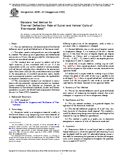 5.2 The thermal deflection properties of a coil may vary from lot-to-lot of thermostat metal material. This method is useful for determining the optimum thickness and length of the material for a given deflection specification.